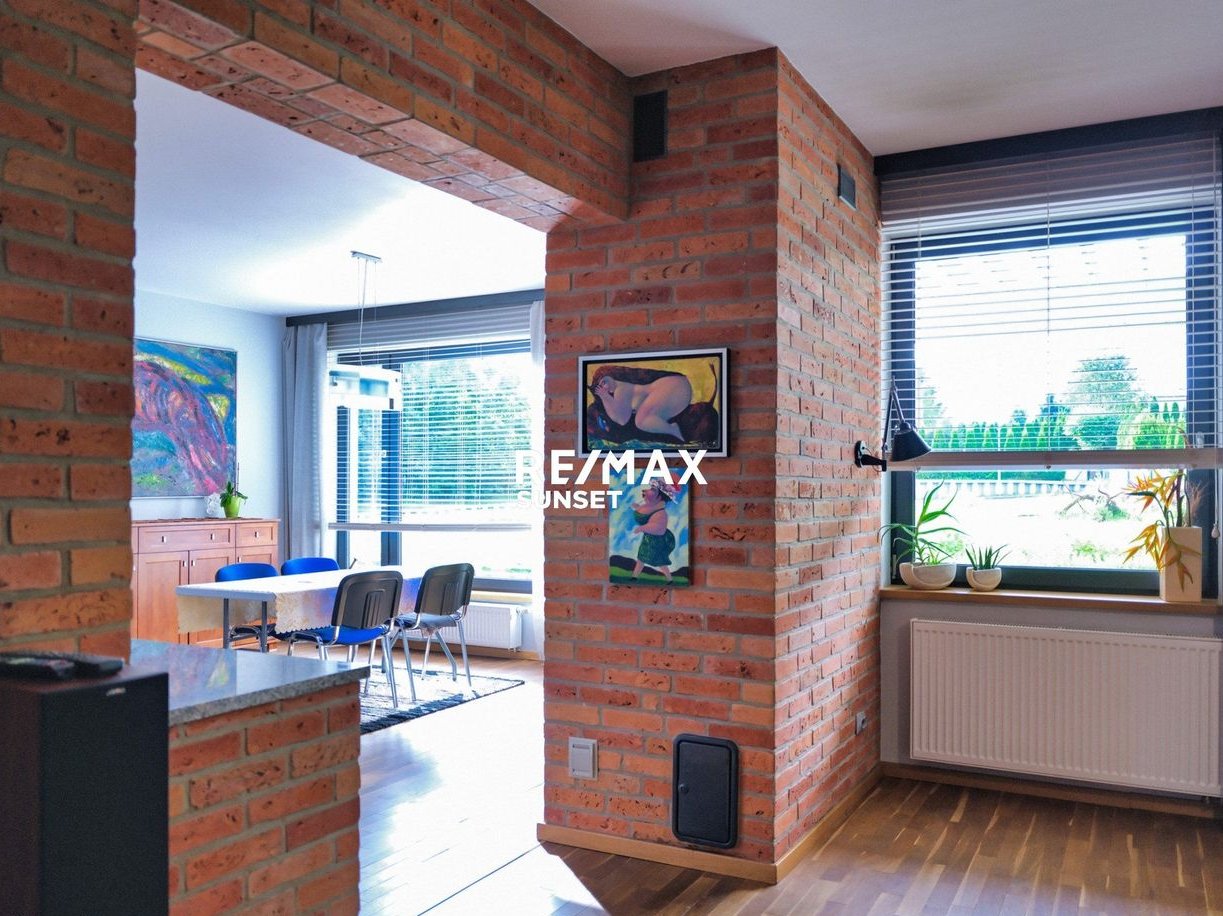 Tu architektura jest czysta i nowoczesna, a wnętrze ma ten rzadki balans: światło, drewno, cegła, przestrzeń.