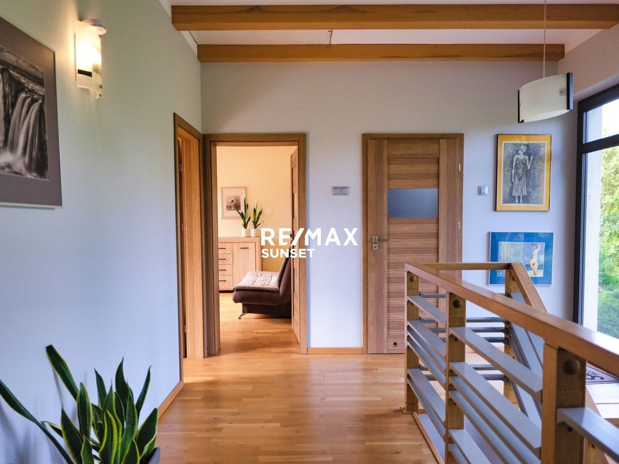 Nowoczesna, elegancka bryła z dopracowanymi detalami i świetnie prowadzącym światłem. W środku: drewno na podłogach, loftowa cegła, otwarta przestrzeń dzienna i widoki na zieleń. To dom, w którym naturalnie zwalniasz tempo - bez rezygnacji z funkcji.
