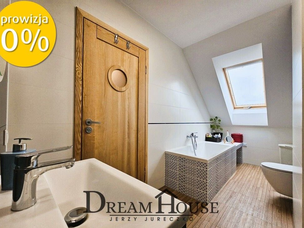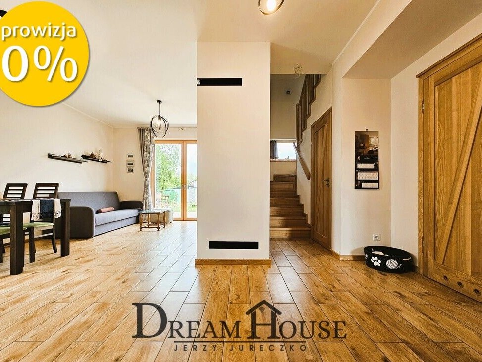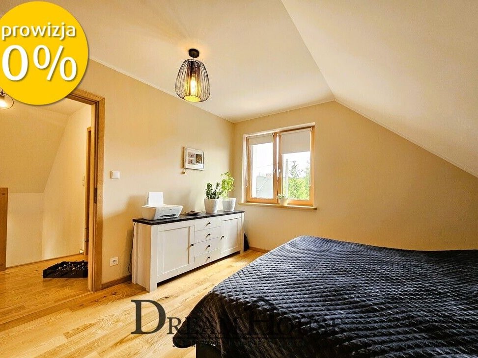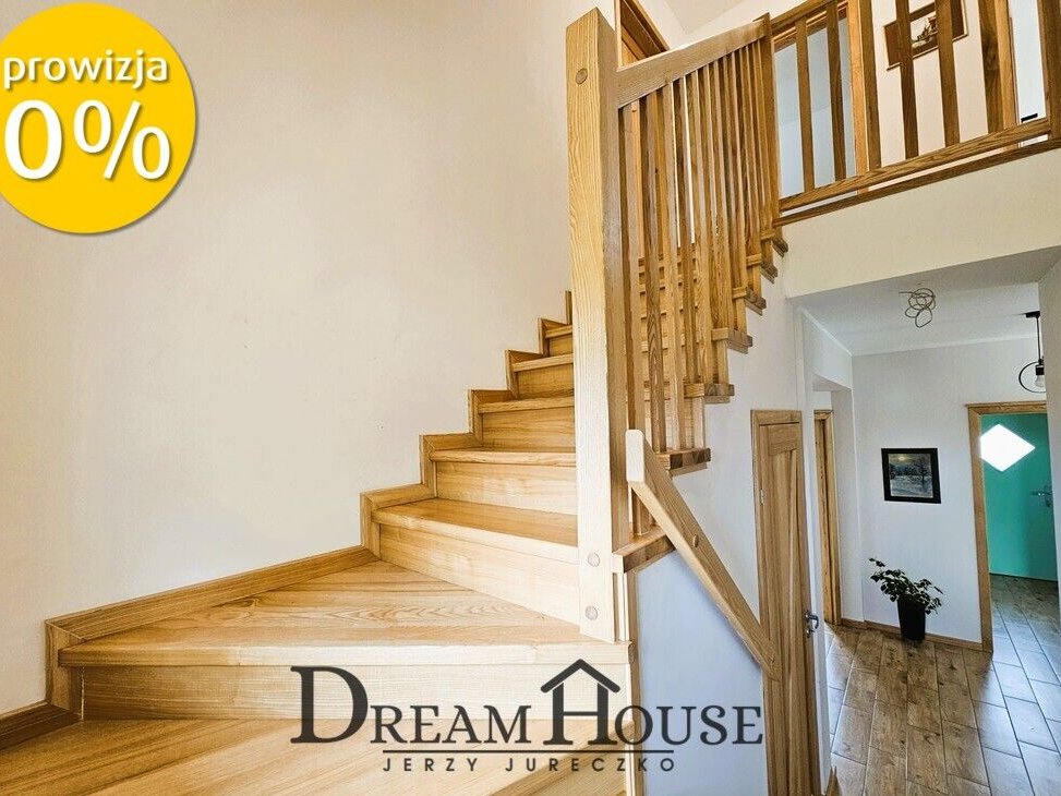 Wnętrze wykończone wysokiej jakości materiałami, które gwarantują trwałość użytkowania oraz wysokie poczucie komfortu. Wykończenie jest spójne i bardzo dobrze spasowane. Ściany i sufity szpachlowane malowane. Podłogi wyłożone wysokiej klasy terakotą (parter) oraz deską barlinecką (poddasze). Drzwi wewnętrzne, schody, parapety, listwy przypodłogowe drewniane - co gwarantuje wysoką trwałość. Kuchnia robiona na zamówienie wyposażona w bardzo dobrej klasy sprzęt AGD. Wejście do domu zabezpieczają drzwi antywłamaniowe.