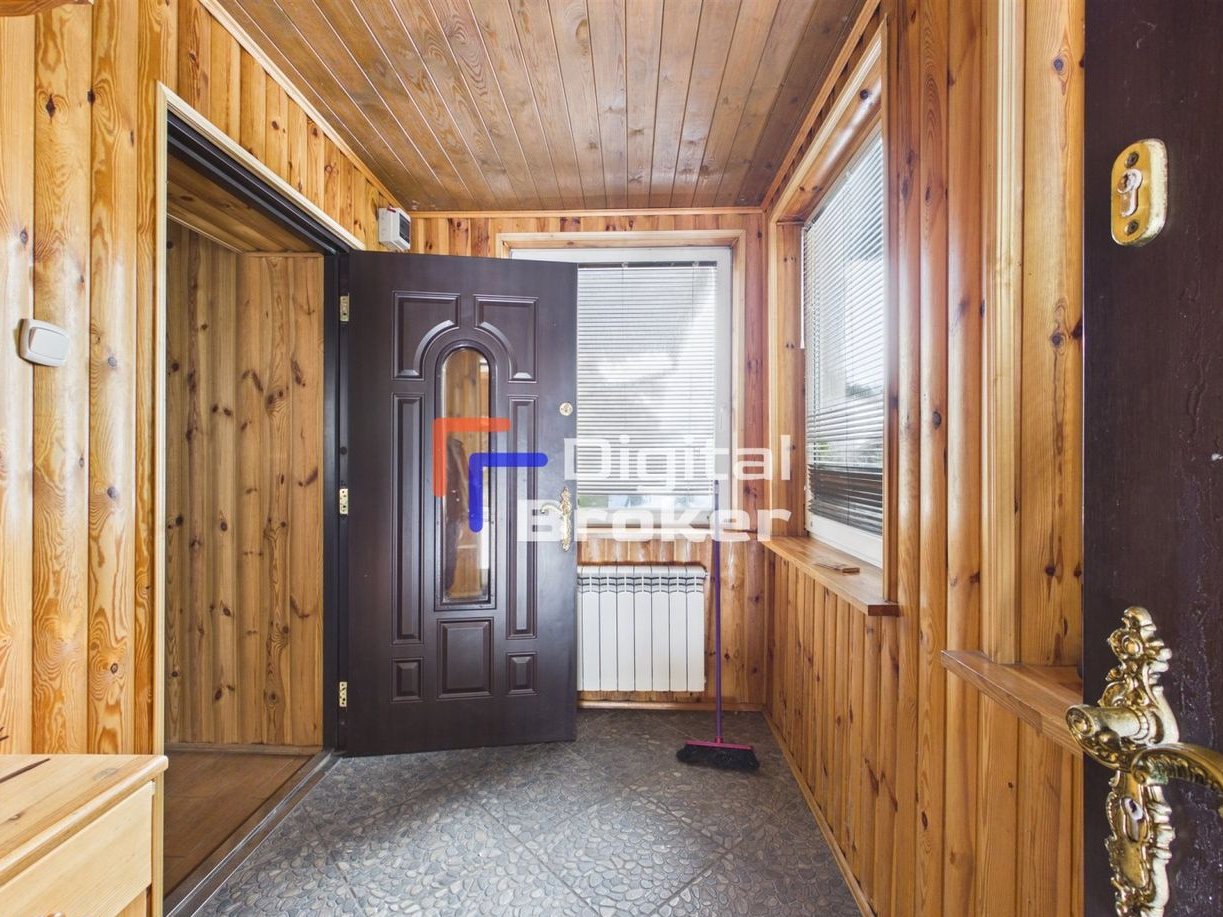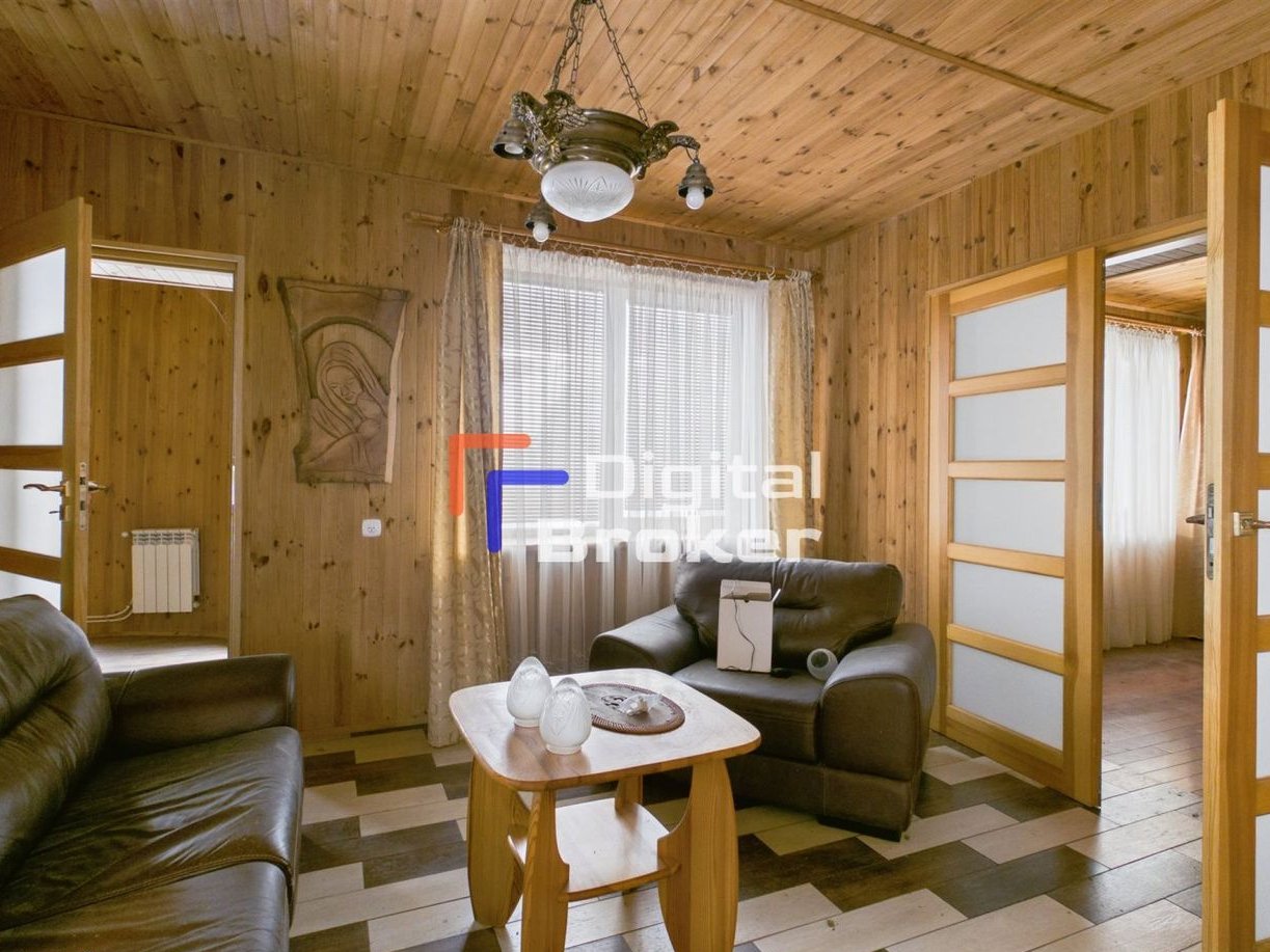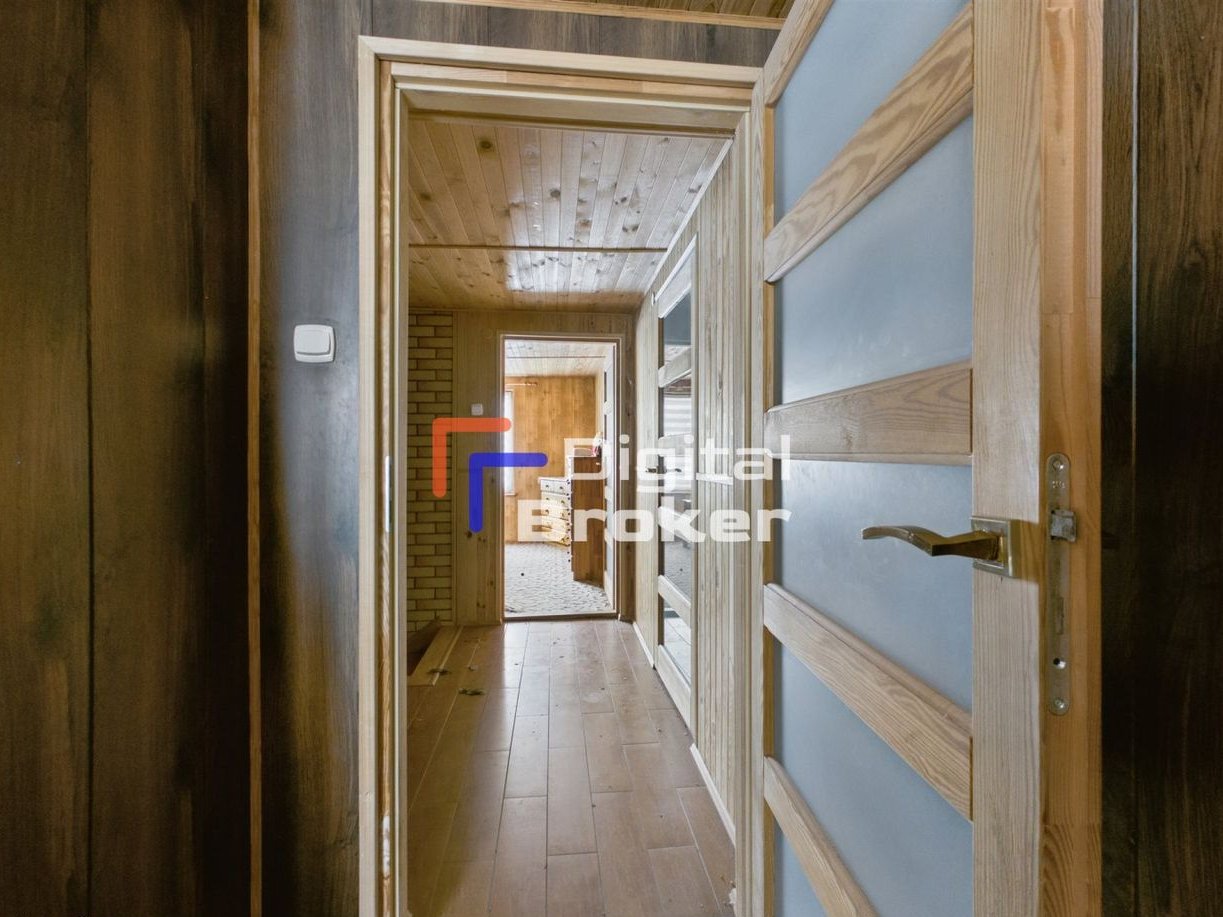 Ekologiczny dom z garażem (cały w naturalnym drewnie), piękny dojrzały drzewostan.