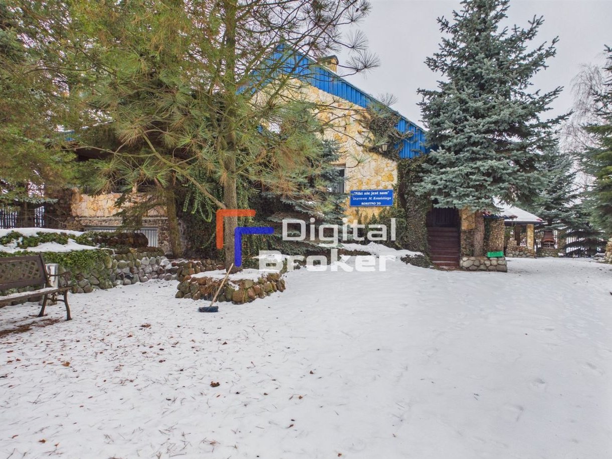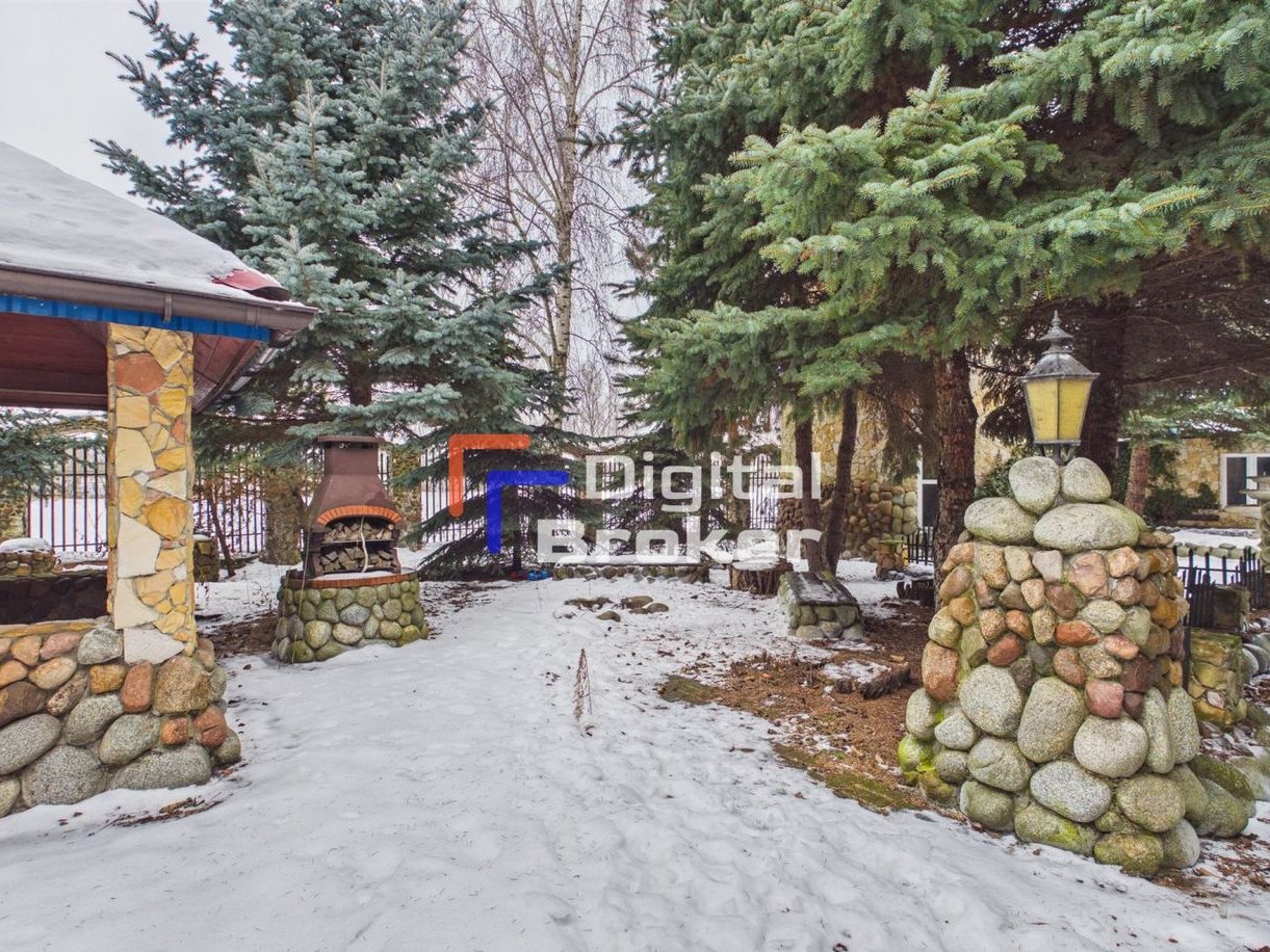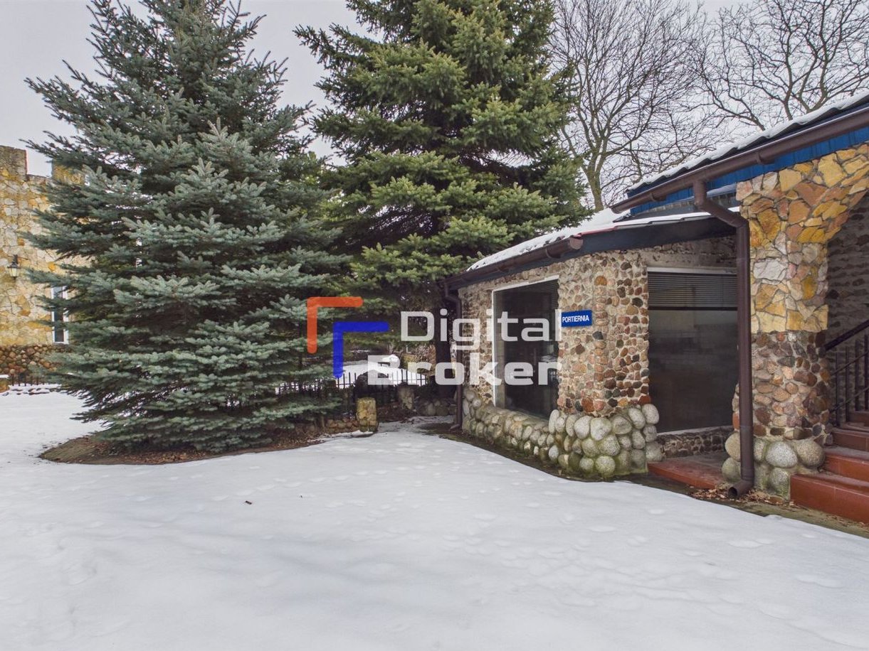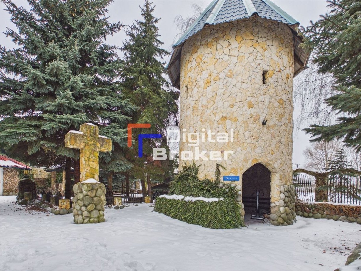 Duży potencjał inwestycyjny umieszczony na działce 3000 m2 z miejscem na grilla, tarasem, fontanną, terenem zielonym i wieżyczkami ozdobnymi, w których zlokalizowane są pomieszczenia gościnne.