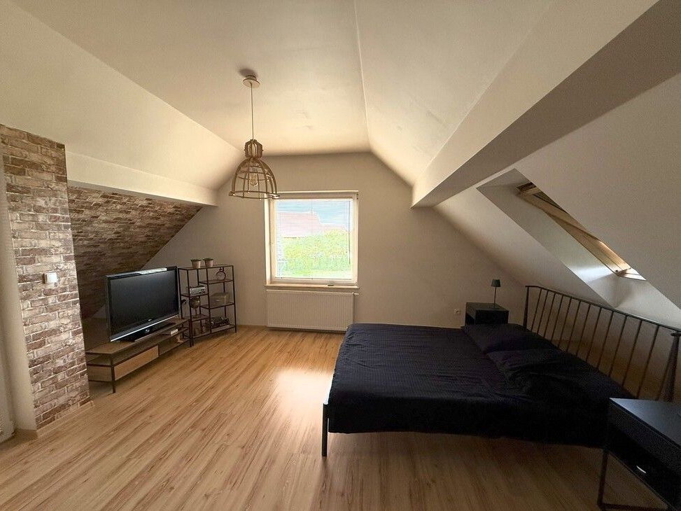 jasna i przytulna sypialnia z wyjściem na taras;