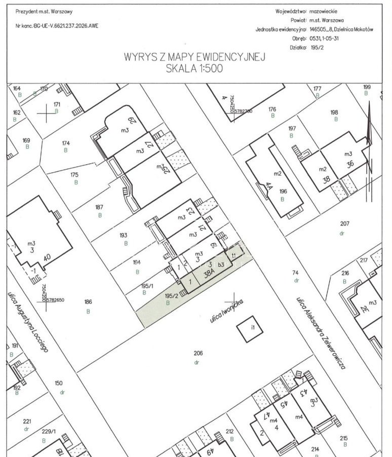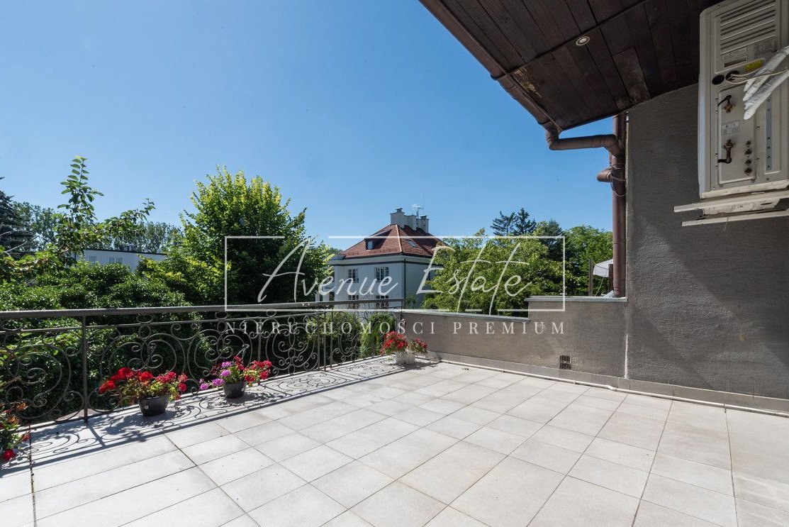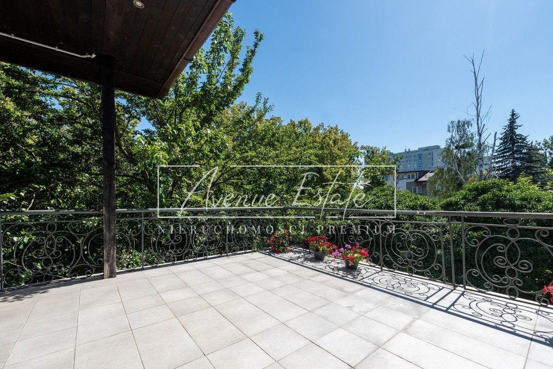 A charming and very green 200m2 plot with numerous plantings, rectangular shape, located in the depths of Sadyba. The segment located on it is currently prepared for business or residential purposes. It offers full office infrastructure, monitoring cameras and air conditioning on each floor. Carpets have been laid on the floors, and wooden boards underneath. The house has huge arrangement potential, a practical layout and a spacious terrace on the first floor. Thanks to the southern, eastern and western exposure, the property lets in a lot of natural light.