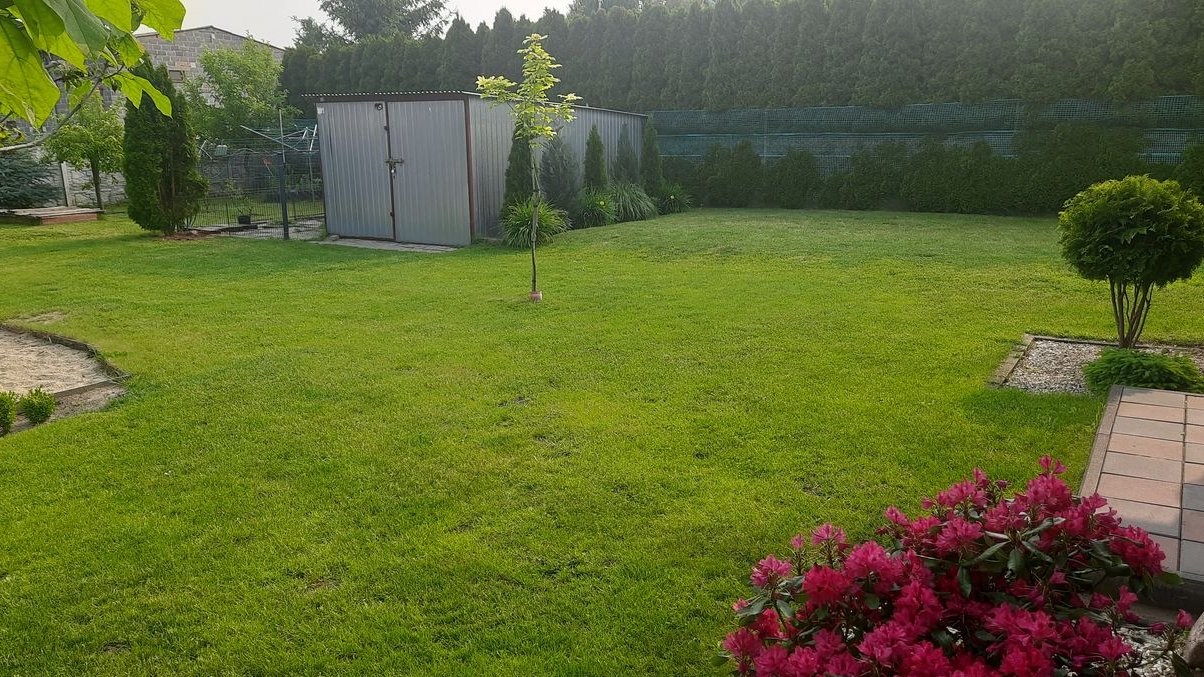 Na podwórzu garaż blaszany służący jako pomieszczenie gospodarcze.