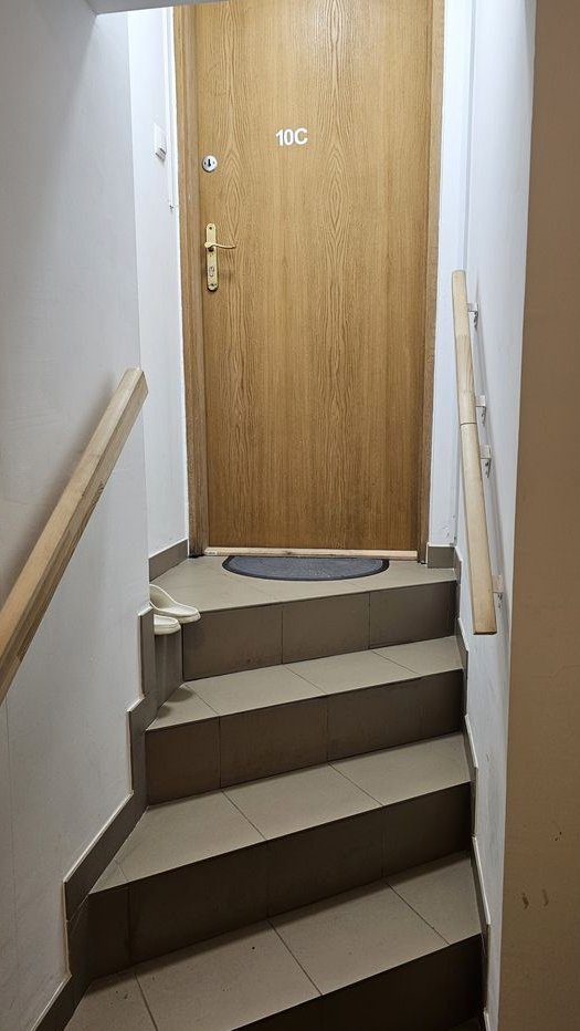 Budynkek z domofone i monitoringiem , duża szeroka klatka schodowa, 2 nowe windy . Mieszkanie znajduje się na 1 piętrze ale tuż przed mieszkaniem jest parę schodków ( widać na zdjęciu ) .