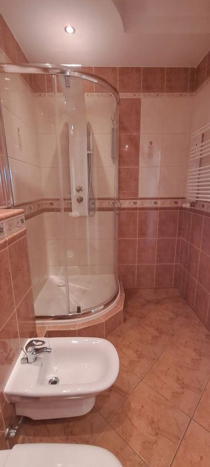 Łazienka: przestronna, z prysznicem typu walk-in z deszczownicą, WC oraz bidetem