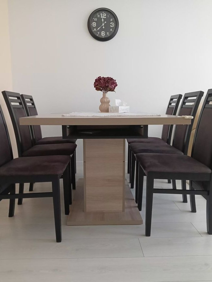 W mieszkaniu pozostaje cała zabudowa kuchenna wraz z potrzebnym sprzętem ( lodówka , płyta indukcyjna, piekarnik, zmywarka) . Po dodatkowym uzgodnieniu istnieje możliwość pozostawienia reszty umeblowania. Dodatkowo do mieszkania przynależy piwnica (gratis dla zdecydowanego klienta). Możliwość dokupienia garażu w bryle budynku.
