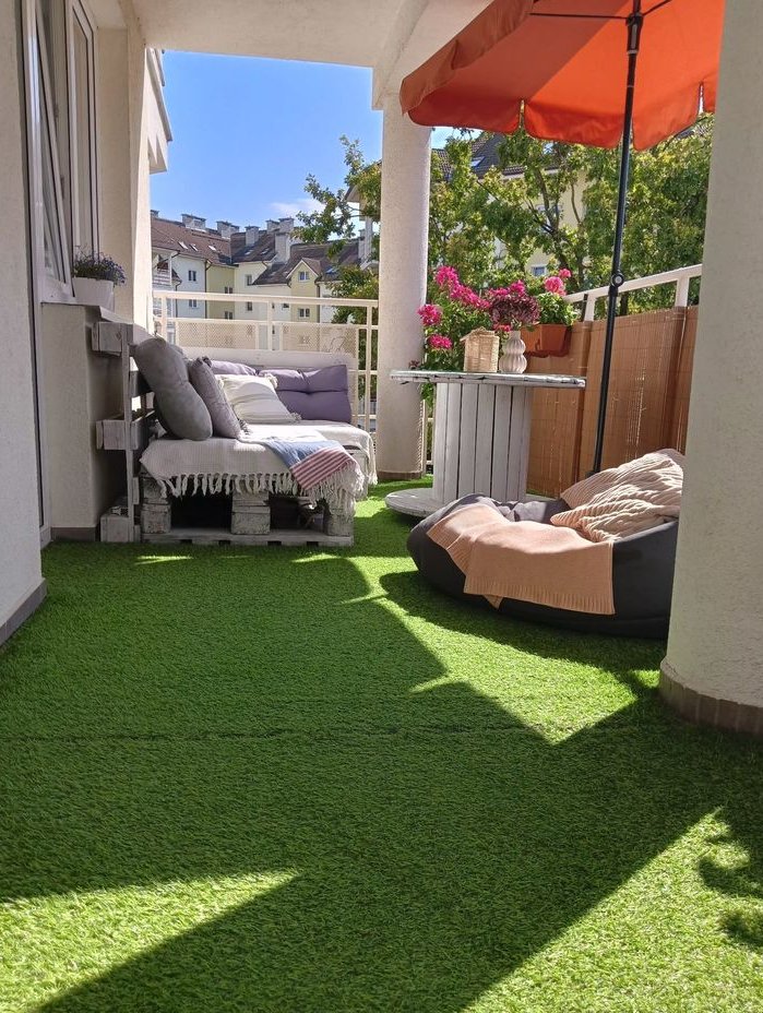 pokój dzienny ok 20 m2 z przestronnym balkonem około 17m2