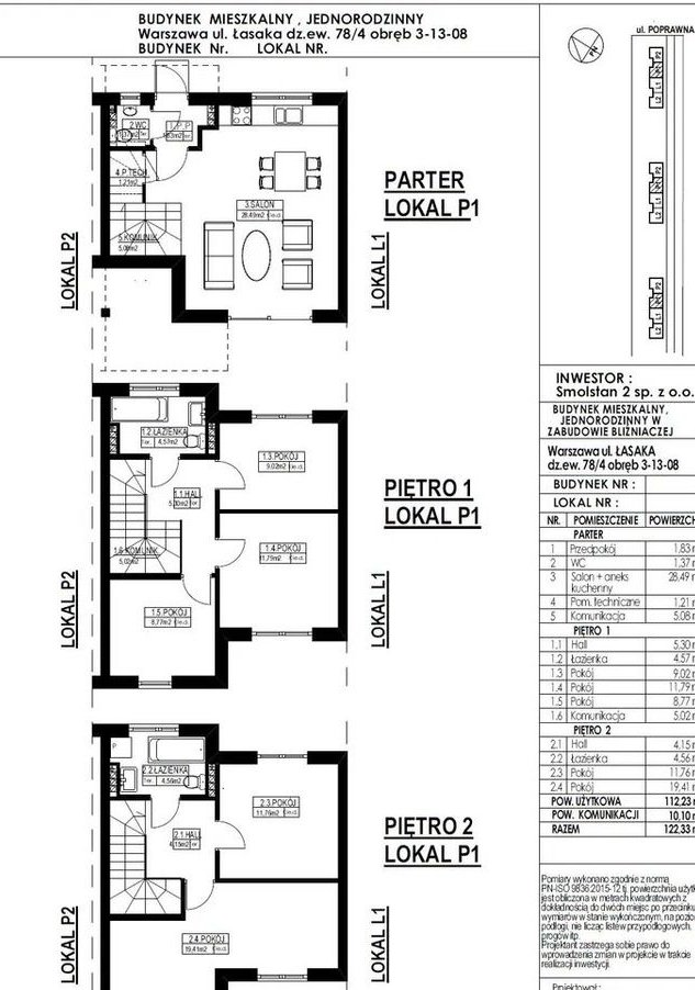 Osiedle Łasaka to segmenty w zabudowie bliźniaczej w budynkach o nowoczesnym charakterze architektonicznym. Lokale mają powierzchnię użytkową 112,23 m² i 10,10 m² powierzchni komunikacji (schodów), co razem daje 122,33 m². W cenę wliczone są ogródek i dwa miejsca postojowe. Osiedle Łasaka to osiedle zamknięte z pełną infrastrukturą: drogą wewnętrzną, miejską wodą i kanalizacją.