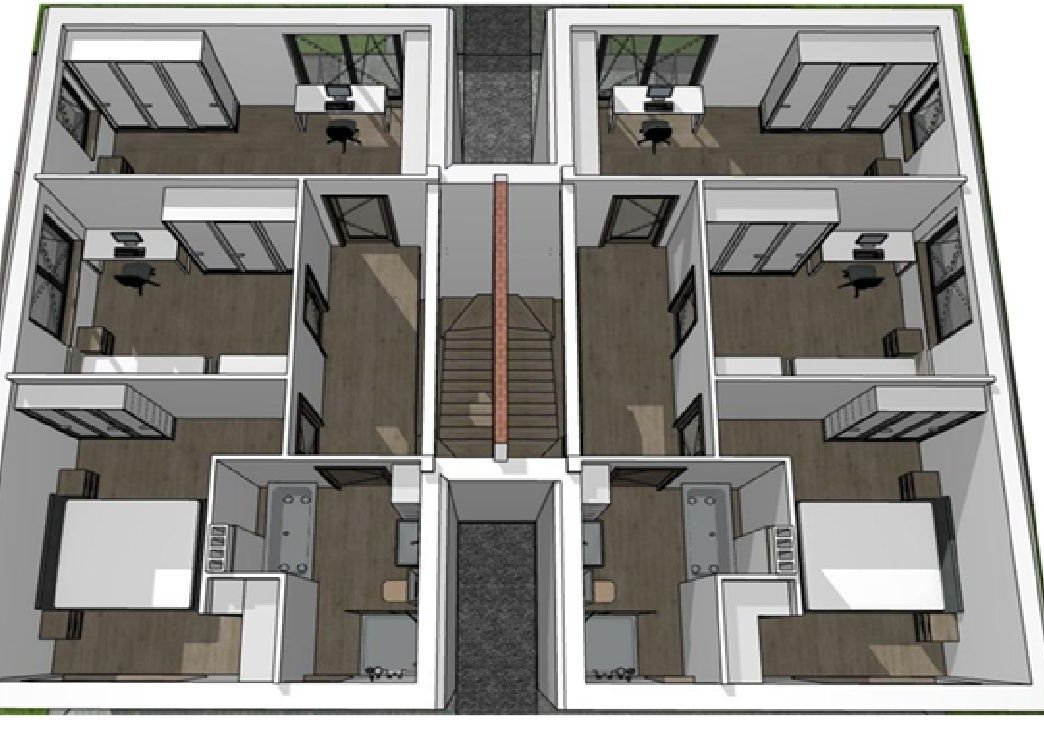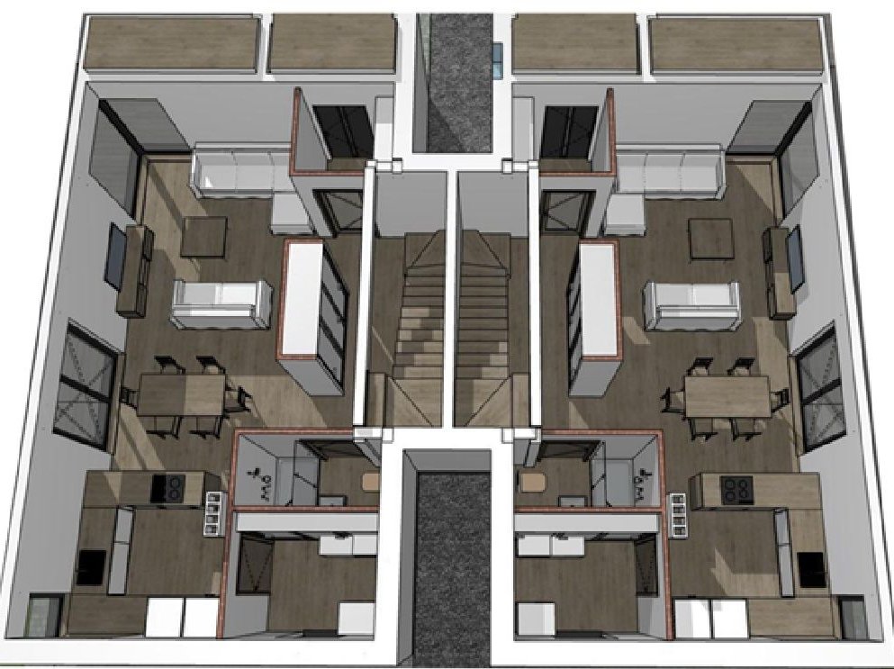 Każdy segment budynku składa się z dwóch kondygnacji i zapewnia wygodny podział na strefę dzienną na parterze oraz nocną na piętrze.