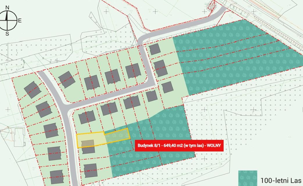 powierzchnia działki : 649,40 m2 (w tym własny 100-letni las)
