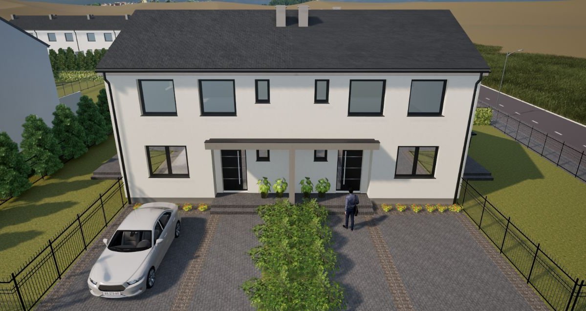 Dom w zabudowie bliźniaczej z ogrzewaniem podłogowym oraz funkcjonalnym układem pomieszczeń:
