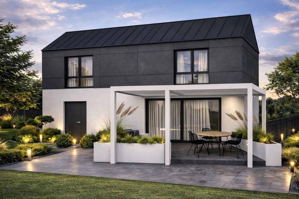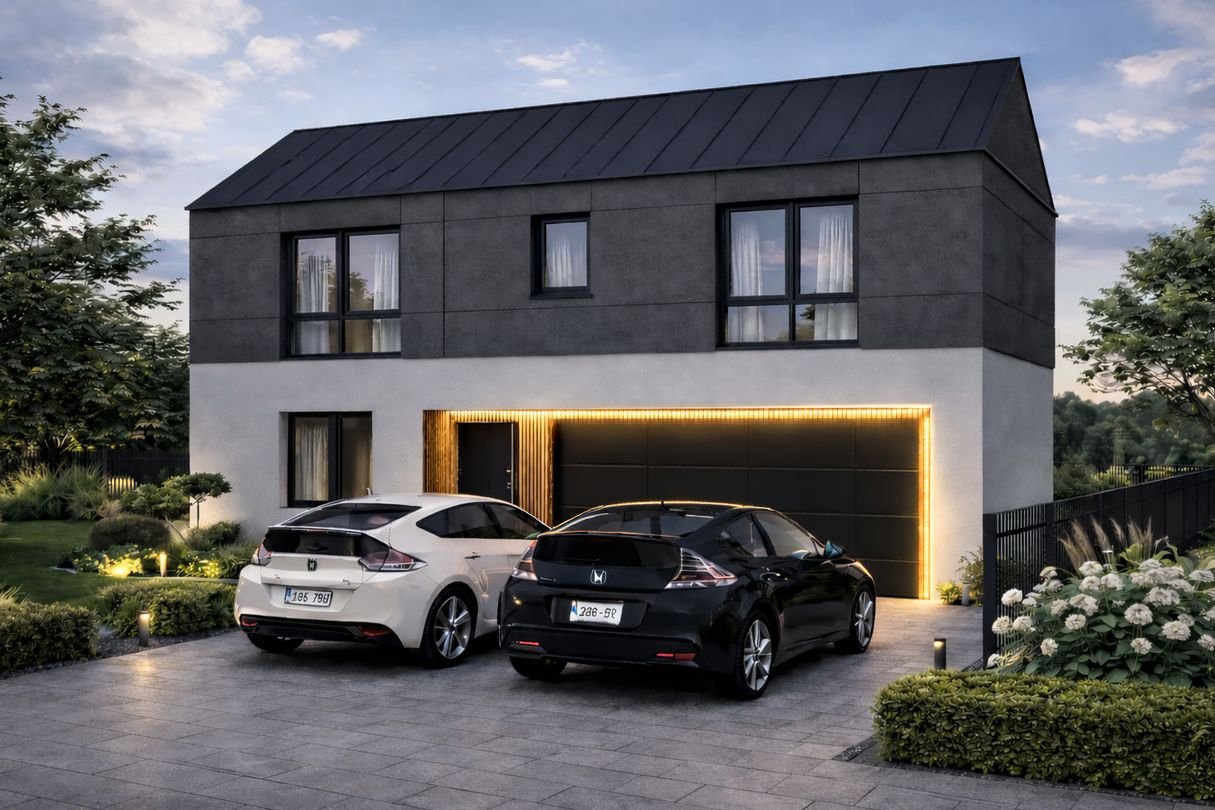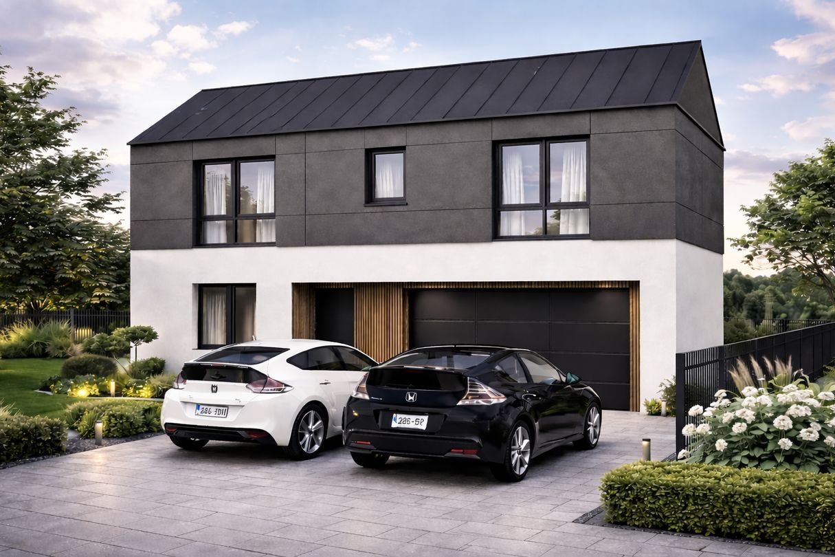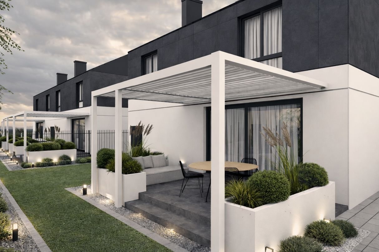 Projekt łączy nowoczesną architekturę z funkcjonalnymi układami pomieszczeń, dużymi ogrodami oraz wysokim standardem wykonania.