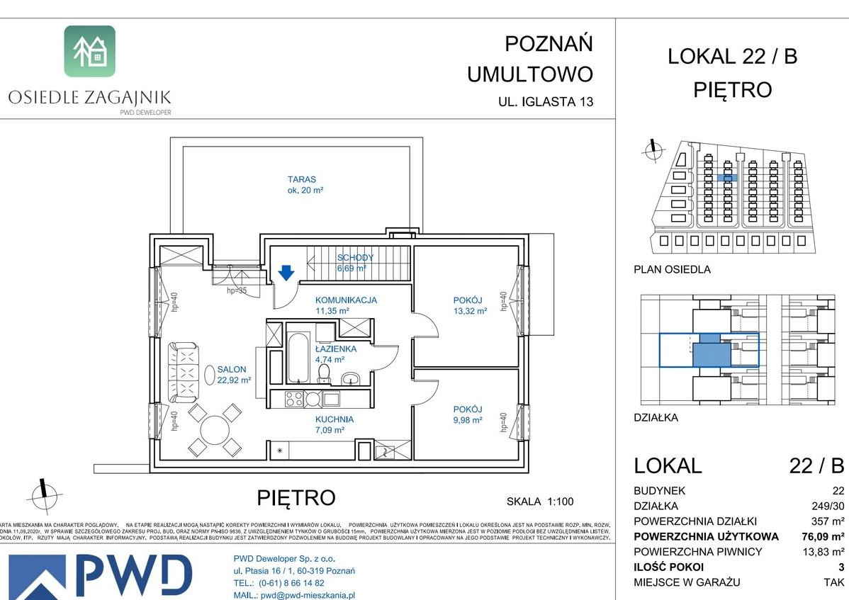 3-pokojowe mieszkanie numer 22/B na 1. piętrze w budynku 2 w Inwestycji Osiedle Zagajnik Dewelopera PWD