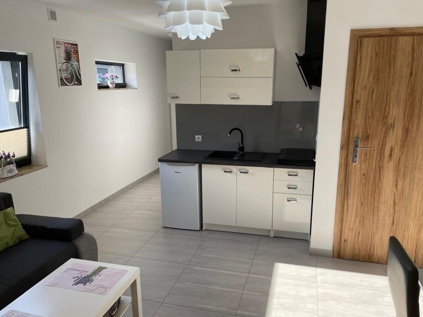 Każde mieszkanie z aneksem kuchennym i łazienką.