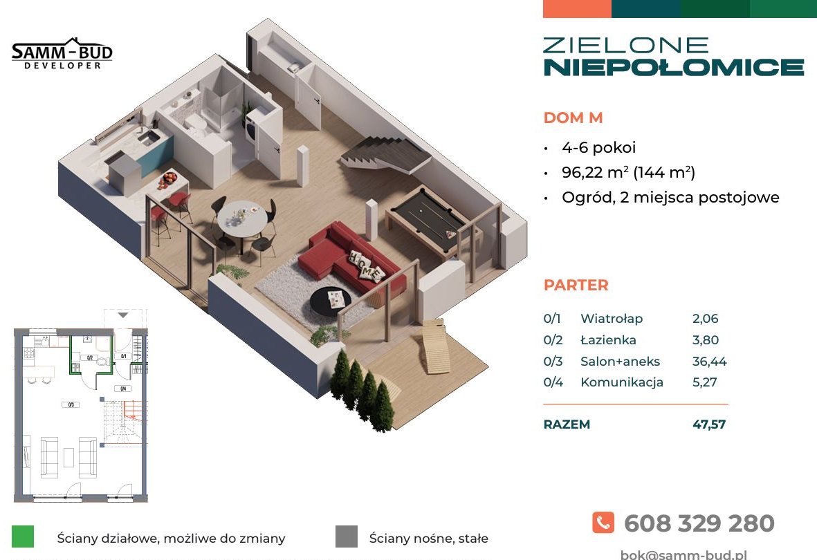 96,22m² ( z poddaszem 144m²)