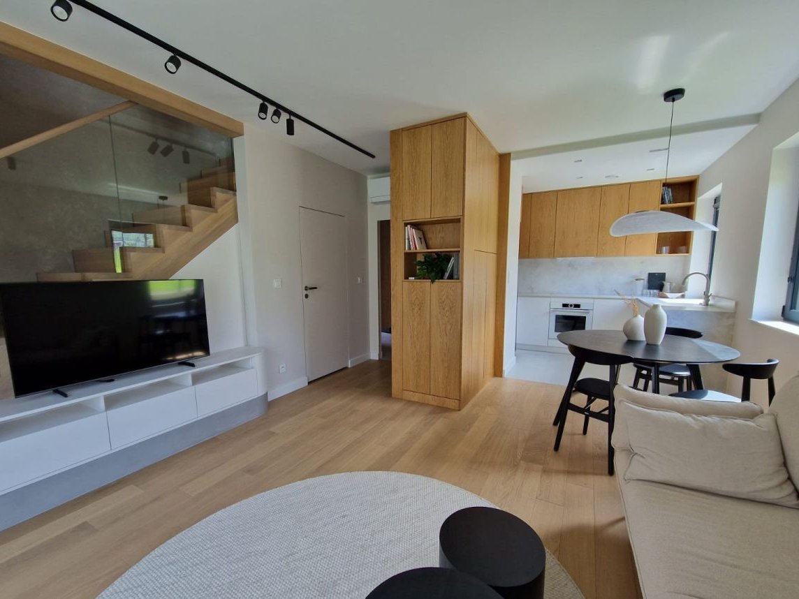 - Salon z aneksem kuchennym - miejsce na duży narożnik, przestronny aneks kuchenny oraz jadalnie z bezpośrednim wyjściem do ogrodu!