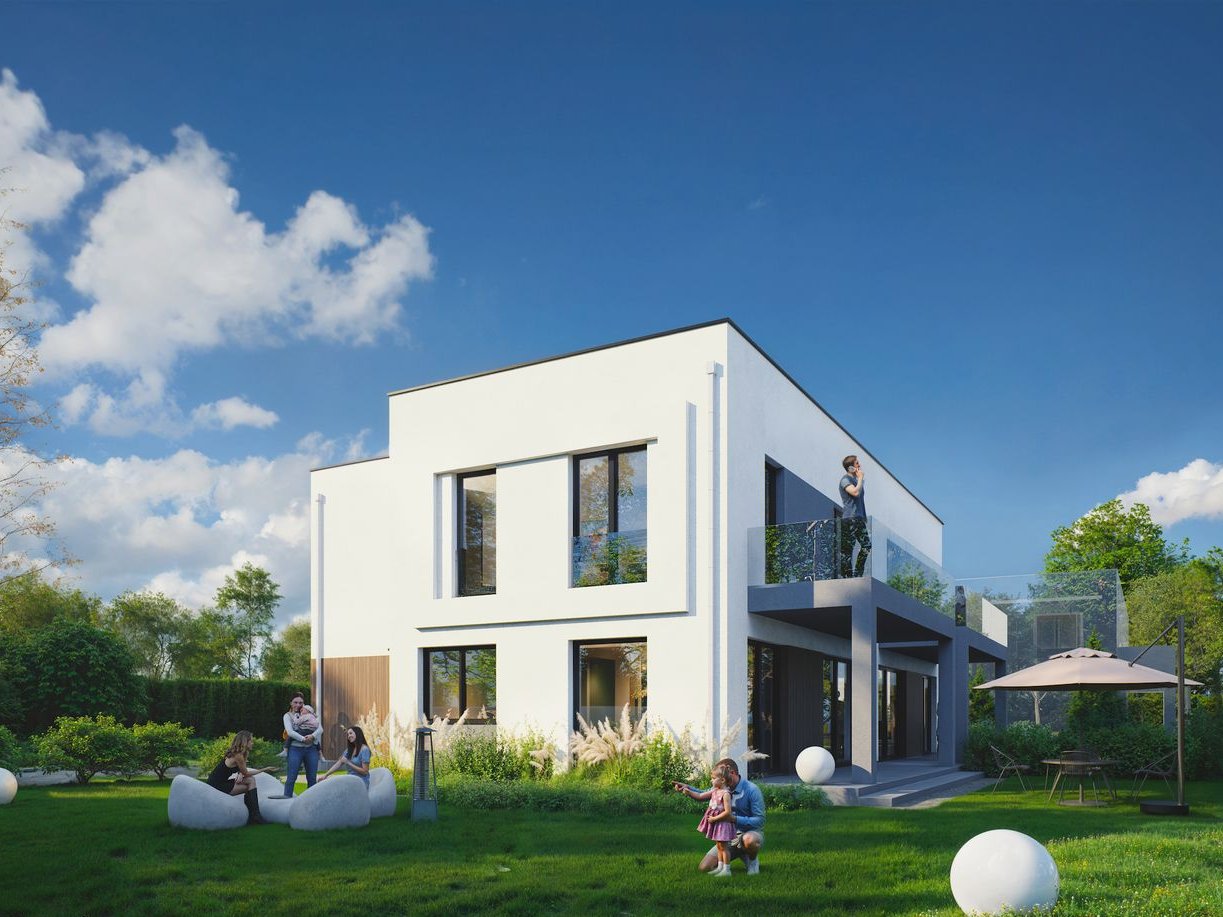 Funkcjonalność – przestronny salon >40m2 z wyjściem do ogrodu, 4 pokoje na piętrze (w tym sypialnia master z garderobą), 3 łazienki, pomieszczenie gospodarcze. Garaż w bryle budynku i dodatkowe 2 miejsca postojowe. Jeśli zaproponowany układ pomieszczeń nie jest dla Ciebie, możemy to zmienić!