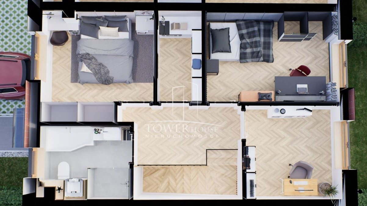 Do lokalu przynależy miejsce parkingowe na podjeździe wyłożonym kostką OPCJA DRUGIEGO MIEJSCA.
