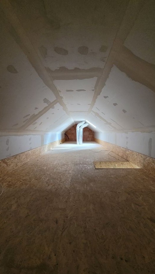 • Sufity piętra wełna mineralna 30cm, zamontowana płyta kartonowo - gipsowa, przeszpachlowana