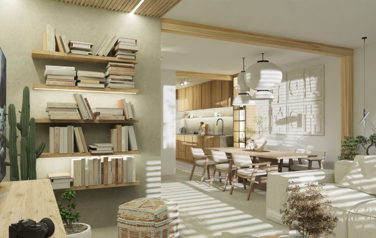 Przestronny salon o powierzchni 45 m² – idealne miejsce na rodzinne spotkania.