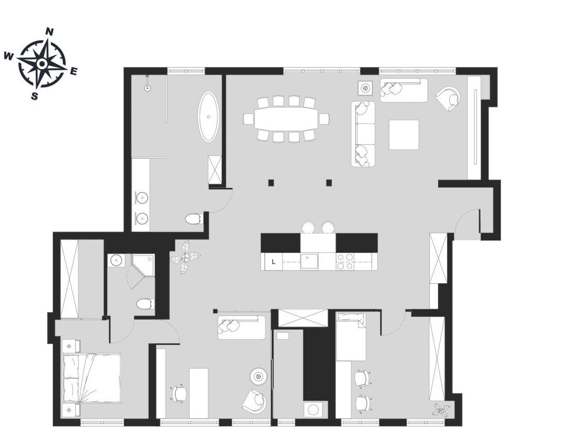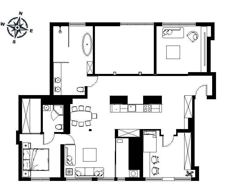 ✔ rodzinny układ (2-4 oddzielne, zamykane pokoje + salon);