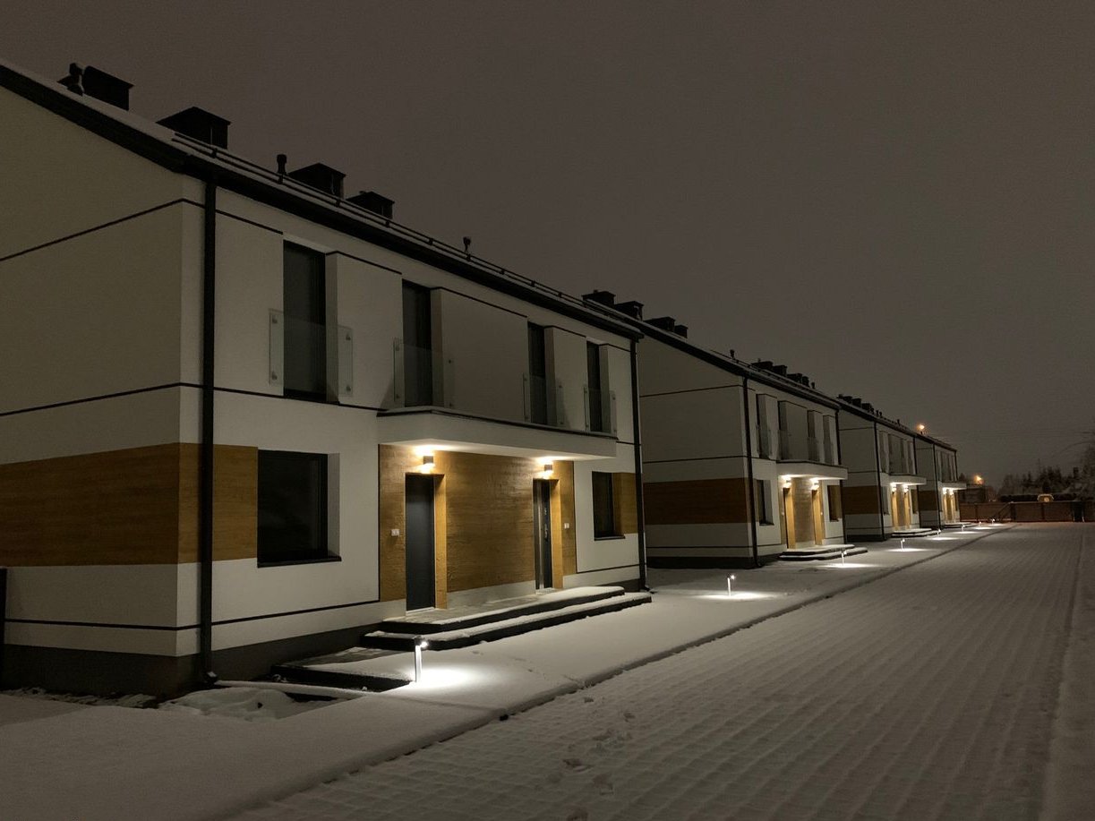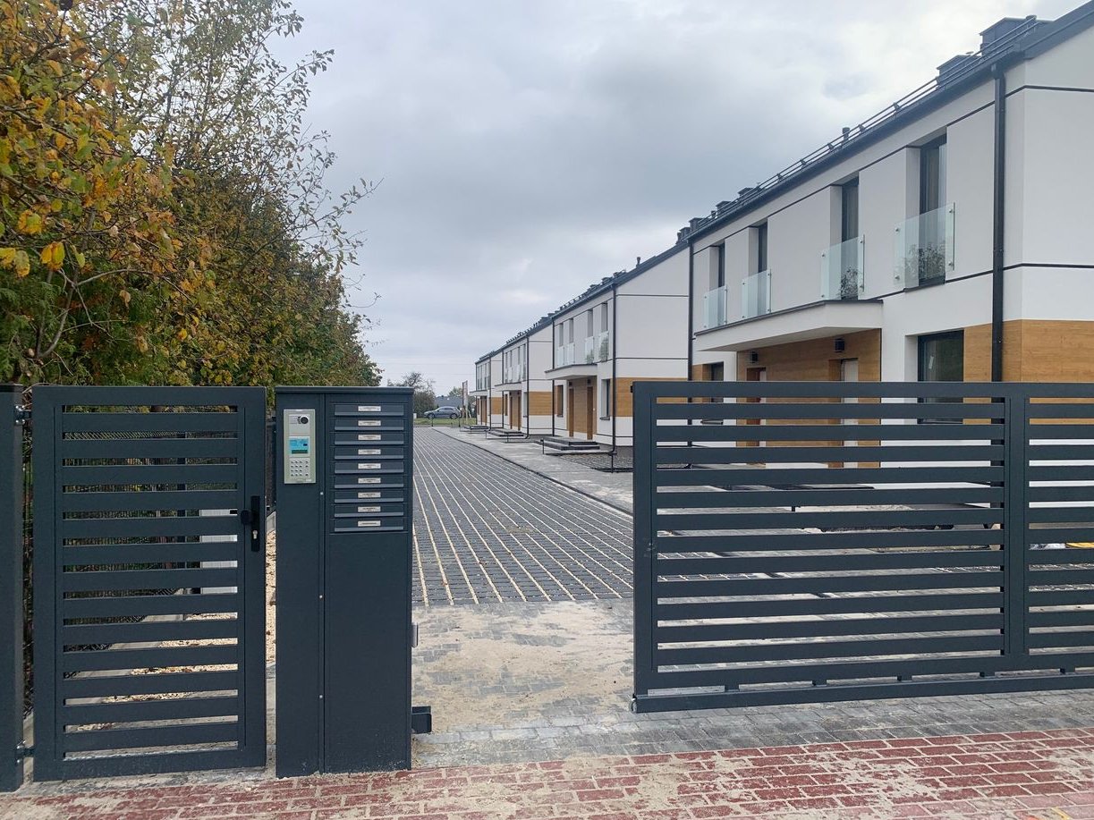 Zamknięty kompleks czterech bliźniaków. Miejsce parkingowe przed domem (dodatkowo płatne 19.500 zł brutto), dodatkowo możliwość parkowania na wspólnej drodze wewnętrznej.