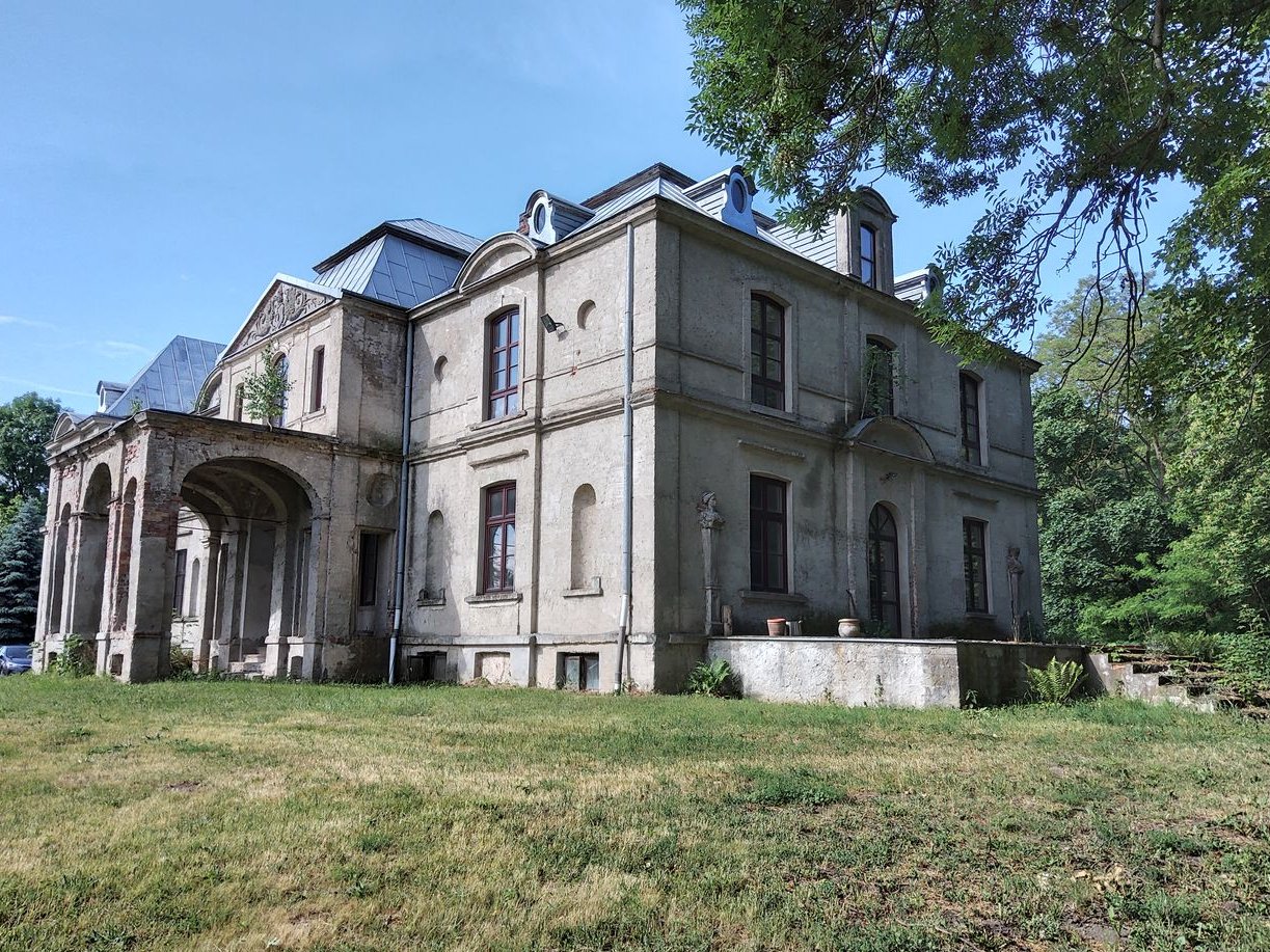 Wyremontowano dach ,wymienione zostały stropy ,nowa instalacja wodno -kanalizacyjna i elektryczna ,c.o. nowe grzejniki .Ma nowe okna i drzwi drewniane .W łazienkach płytki ,schody drewniane .Tynki wewnętrzne- gładź szpachlowa , tynki zewnętrzne -została wykonana pierwsza warstwa cementowo -wapienna.W skład nieruchomości wchodzi :-pałac o pow.741 m2 ,wybudowany w latach 1880-1890 ,przebudowany w 1910 roku .- spichlerz o pow. 453 m2 ,wybudowany w ok.1850 roku ,murowany z pełnej cegły ceramicznej .Budynek trzykondygnacyjny posiadający drewniane stropy ,dach kryty papą .-garaż -o pow. ok.250 m2 -murowany ,składający się z 7 części ,dach pokryty papą ,wybudowany w drugiej połowie XX w.Do wszystkich budynków jest doprowadzona instalacja elektryczna , do pałacu wodno -kanalizacyjna oraz przydomowa oczyszczalnia ścieków .Ogrzewanie to jest to gruntowa pompa ciepła wykorzystująca 7 odwiertów na głębokość ok.100 m każdy .Jest także możliwość ogrzewania na ropę lub węgiel .