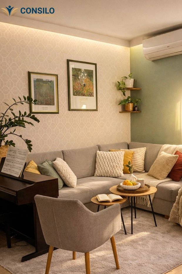 Istnieje możliwość wydzielenia dodatkowego pokoju w salonie.