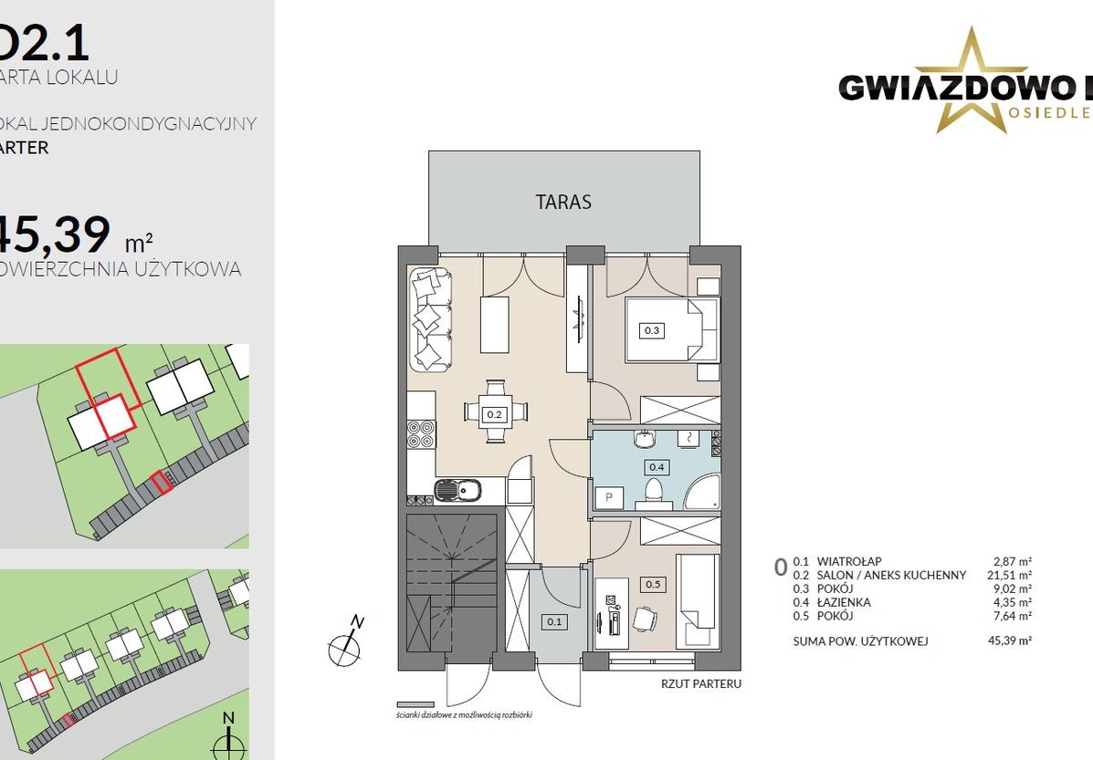 mieszkanie parterowe 45,39 m² | 3 pokoje | duży taras| ogródek 135 m² | 1 miejsca postojowe | BEZCZYNSZOWE | Dostępne metraże od 40-75 m².