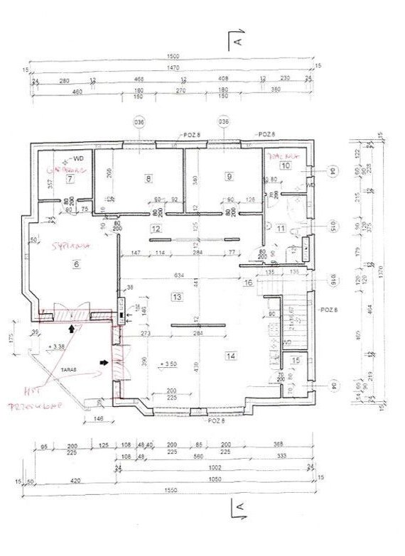 * przestrzeń parteru z zapleczem socjalnym i toaletą - wys. ponad 3 m,