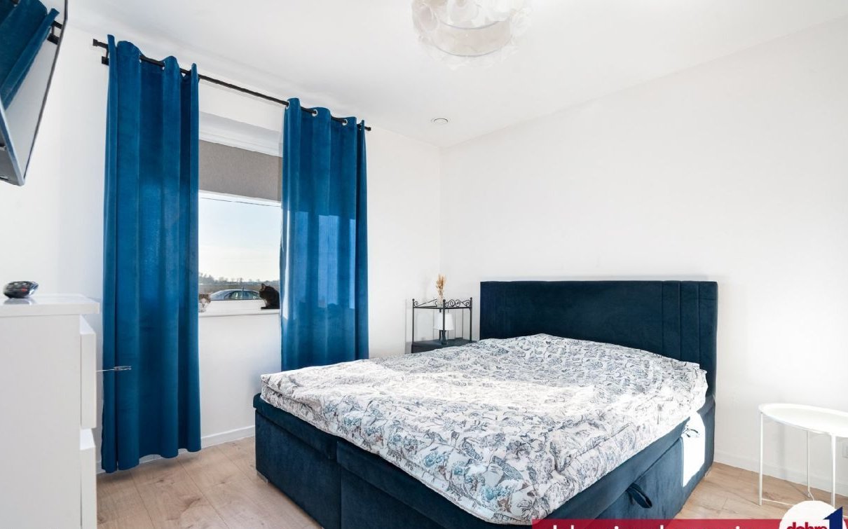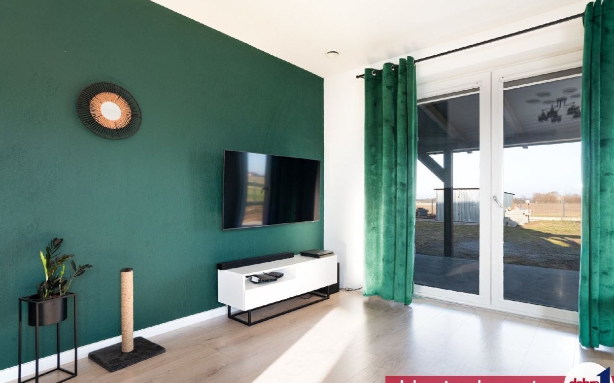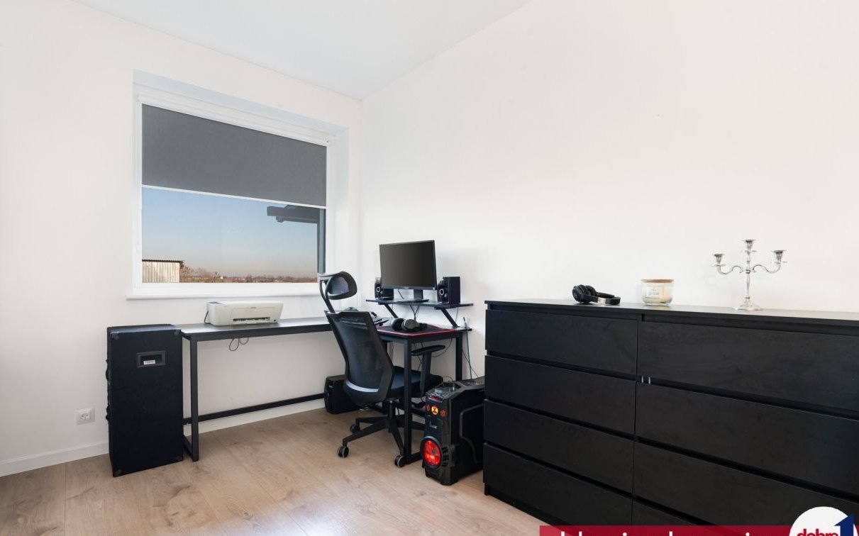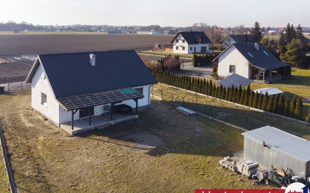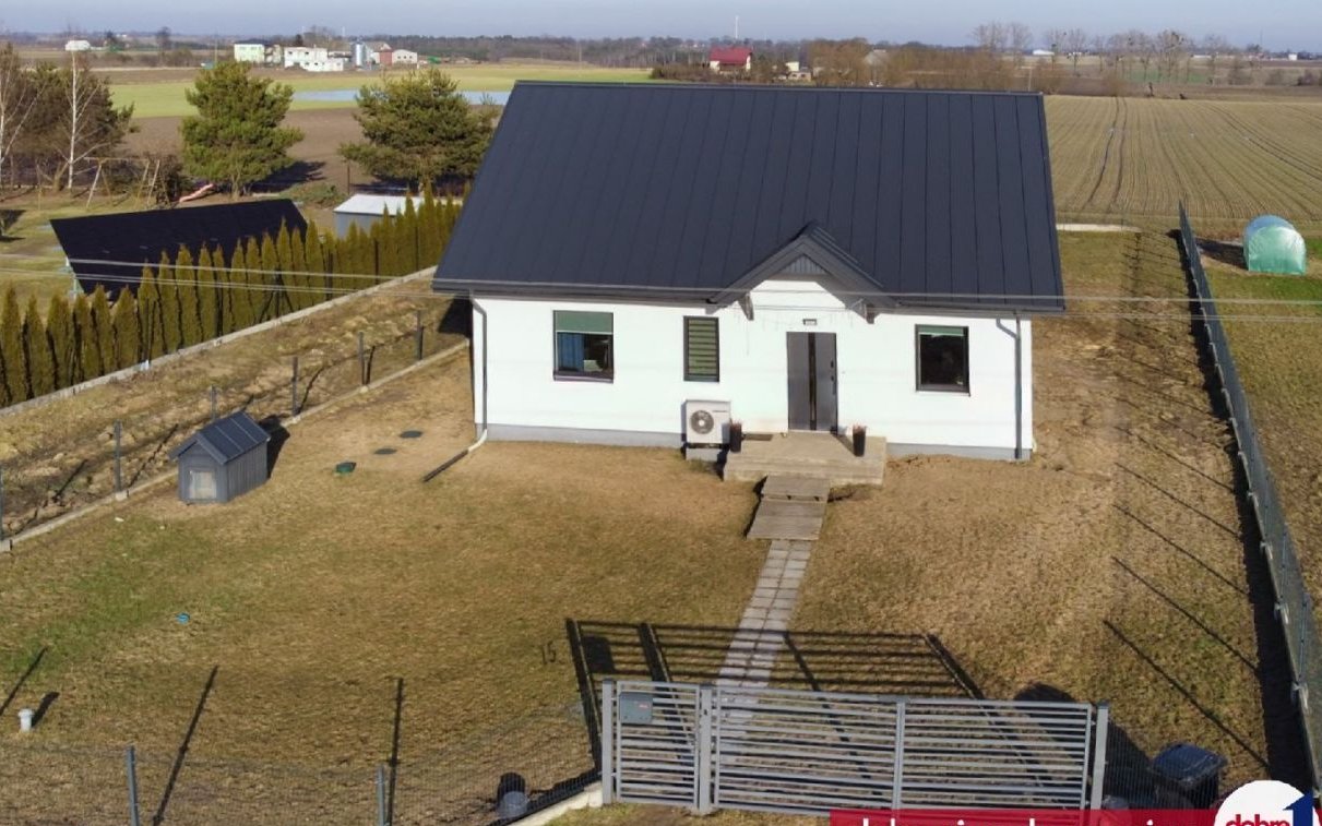 Dobre Nieruchomości oferują na sprzedaż wolnostojący, parterowy dom jednorodzinny o przemyślanym układzie, z zadaszonym tarasem i nowoczesną, prostą bryłą. Budynek jest zadbany i urządzony w spójnym, współczesnym stylu (jasne podłogi, białe zabudowy, czarne akcenty, dekoracyjne ściany), dzięki czemu nadaje się do zamieszkania bez dużych nakładów.