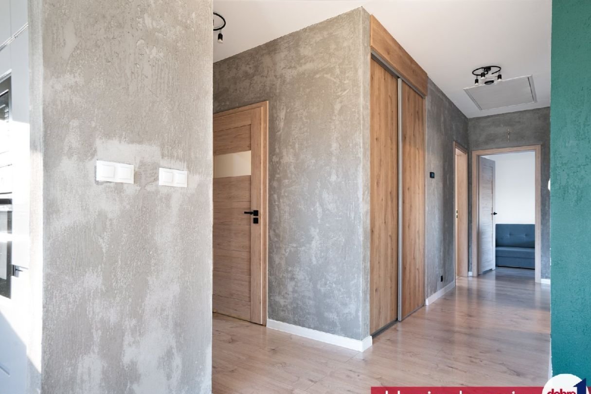 korytarz: duża szafa w zabudowie (fronty drewnopodobne), styl “beton” na ścianach