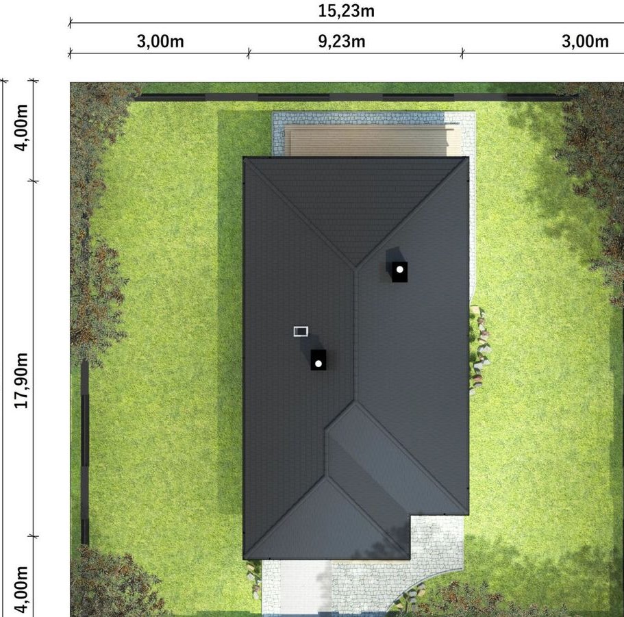 Dom wg projektu Zelandia z modyfikacjami (zlikwidowano wnęki ścian zewnętrznych w celu poprawy użyteczności i zwiększenia metrażu),