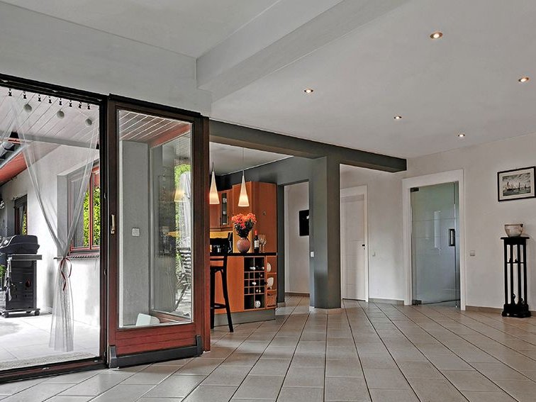 Funkcjonalny układ pomieszczeń: wiatrołap z zabudowaną szafą commandor, salon dwustronnie przeszklony w widokiem na ogród, jadalnia usytuowana jest między kuchnią a salonem, pokój dla dziecka, sypialnia z garderobą i prywatną łazienką z kabiną prysznicową, pokój gościnny, łazienka z wanną, taras.