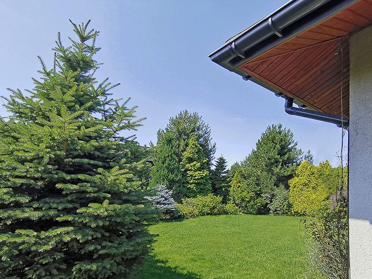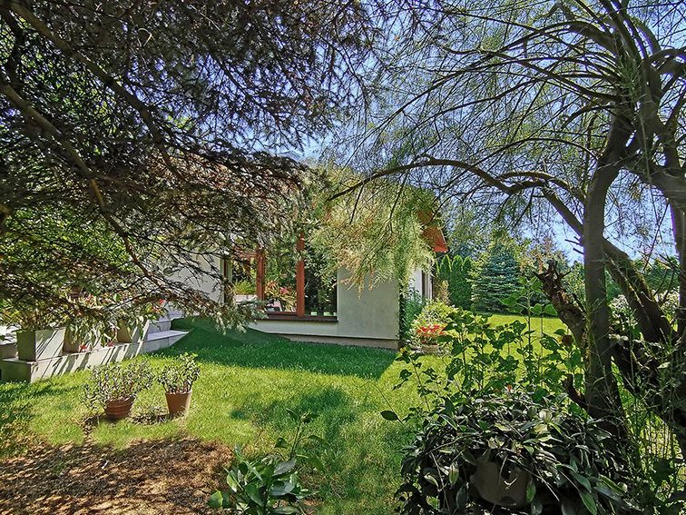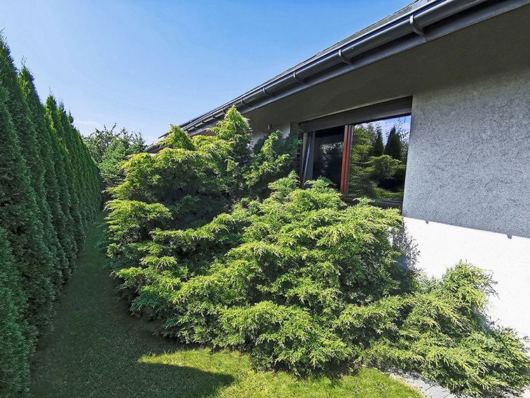 Działka bardzo zadbana, płaska, z licznymi nasadzeniami.