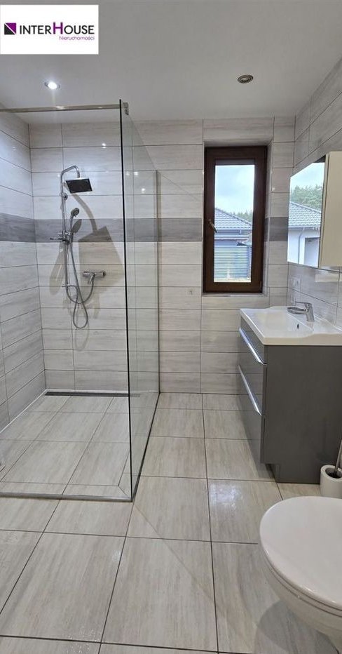 Dom o pow. całkowitej 126 m2, wybudowany w 2018 roku, posadowiony na działce o pow. 615 m2, składający się z salonu z wyjściem na taras, kuchni, łazienki z wc, dwóch sypialni, gabinetu, przedpokoju, wiatrołapu, pomieszczenia gospodarczego z wc i pralnią oraz garażu. Dodatkowo poddasze o pow. 50 m2 z możliwością zagospodarowania (wykonano wylewki i docieplenie stropu ).