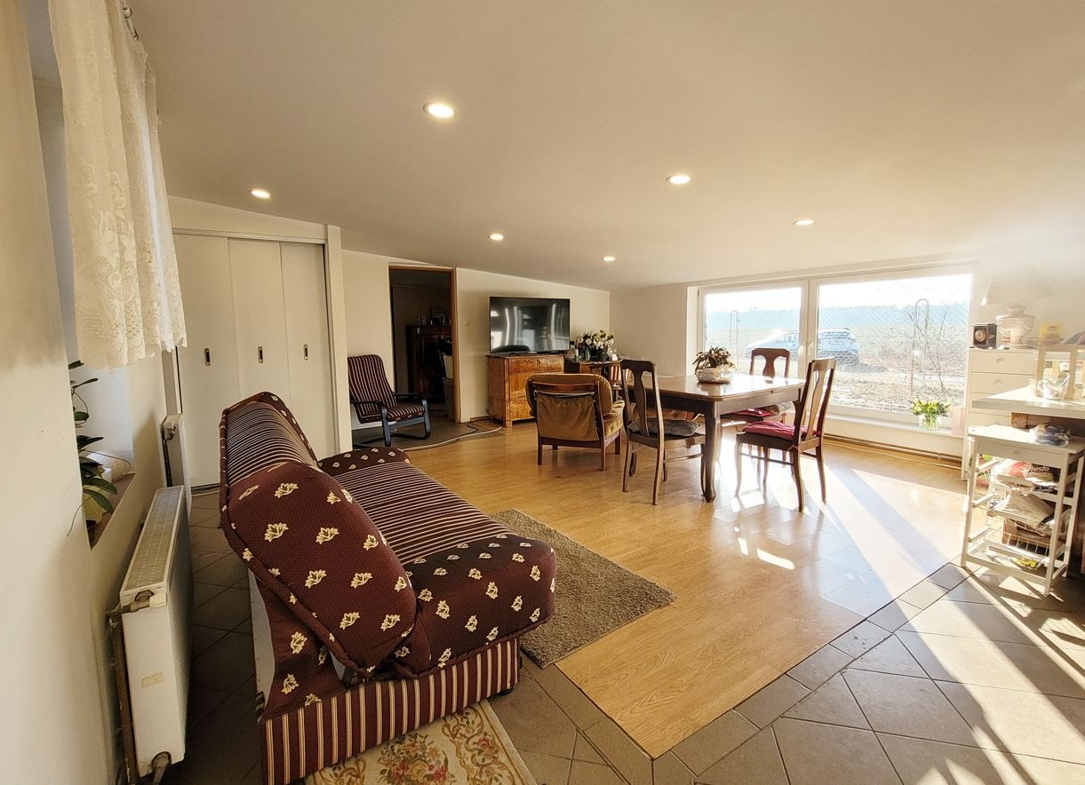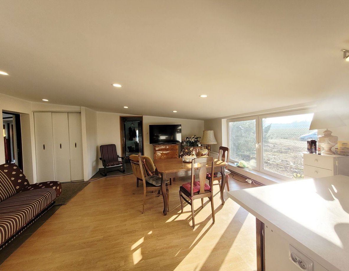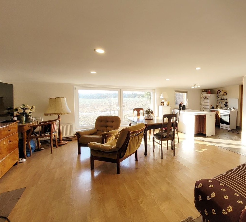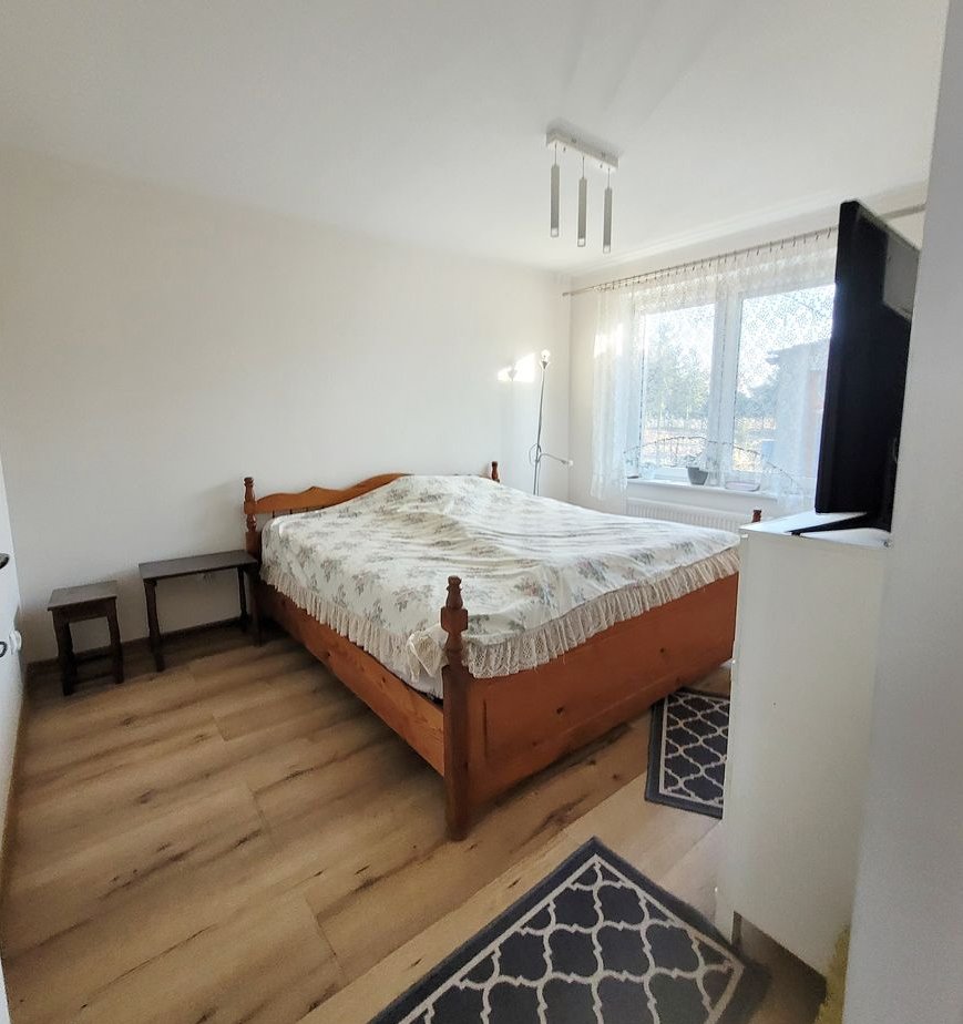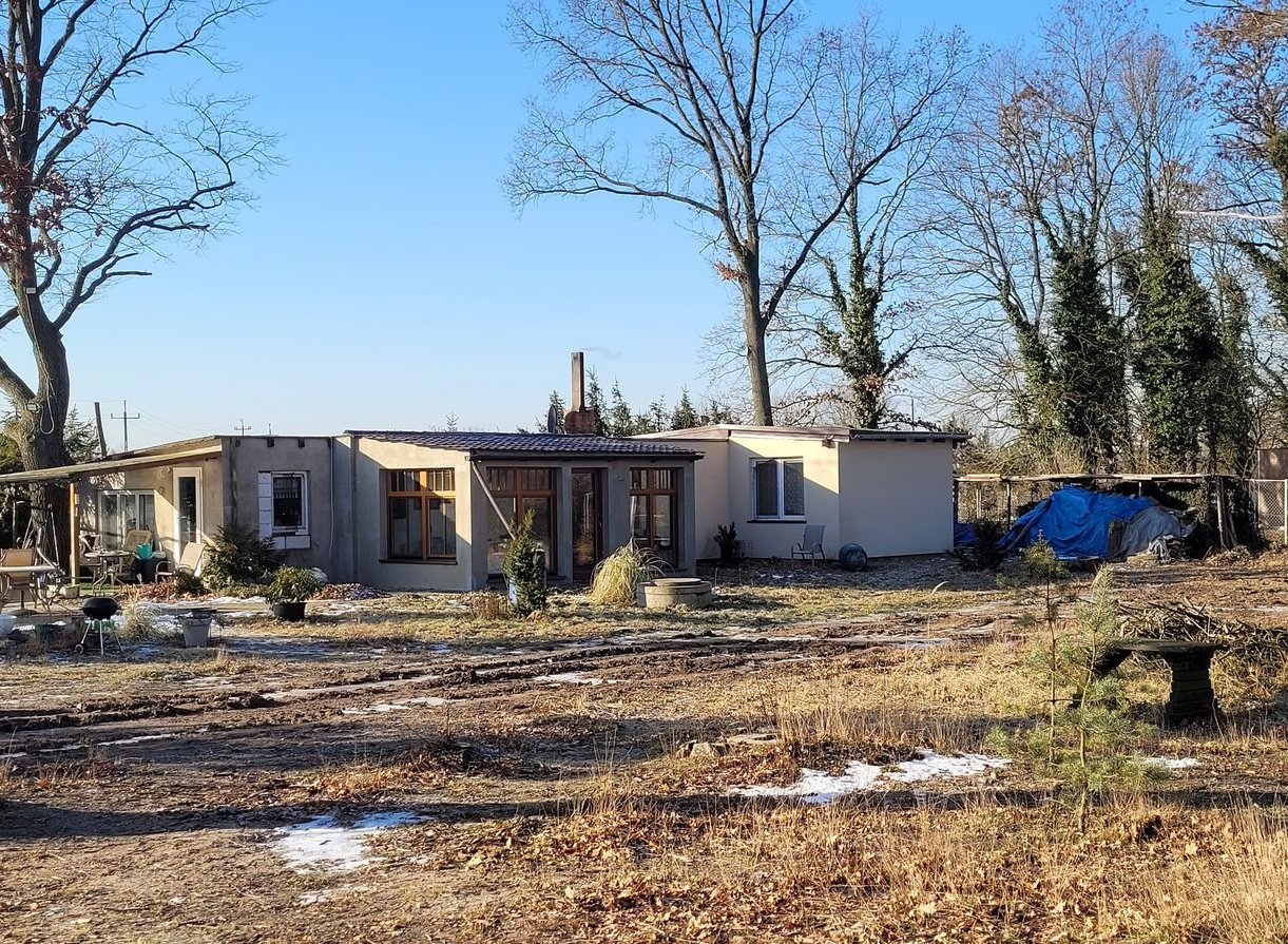 Na działce znajduje się dom o powierzchni nieco ponad 100 m², o prostej, bungalowowej formie i użytkowym charakterze. Nie jest to oferta dla osób oczekujących nowoczesnego standardu ani domu "pod klucz". To propozycja dla osób z wyobraźnią, które chcą stopniowo pracować nad budynkiem i dostosować go do własnych potrzeb.