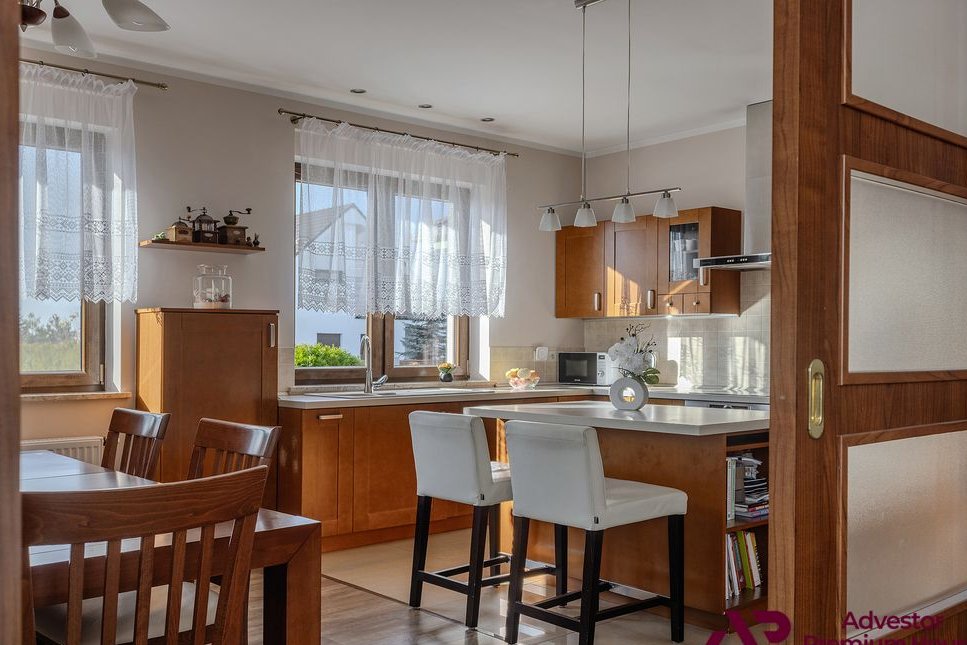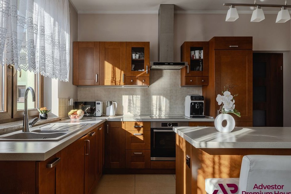 Kuchnia jest oddzielna, z oknem, w pełni wyposażona. Drewniane fronty nadają jej ciepły, domowy charakter.
