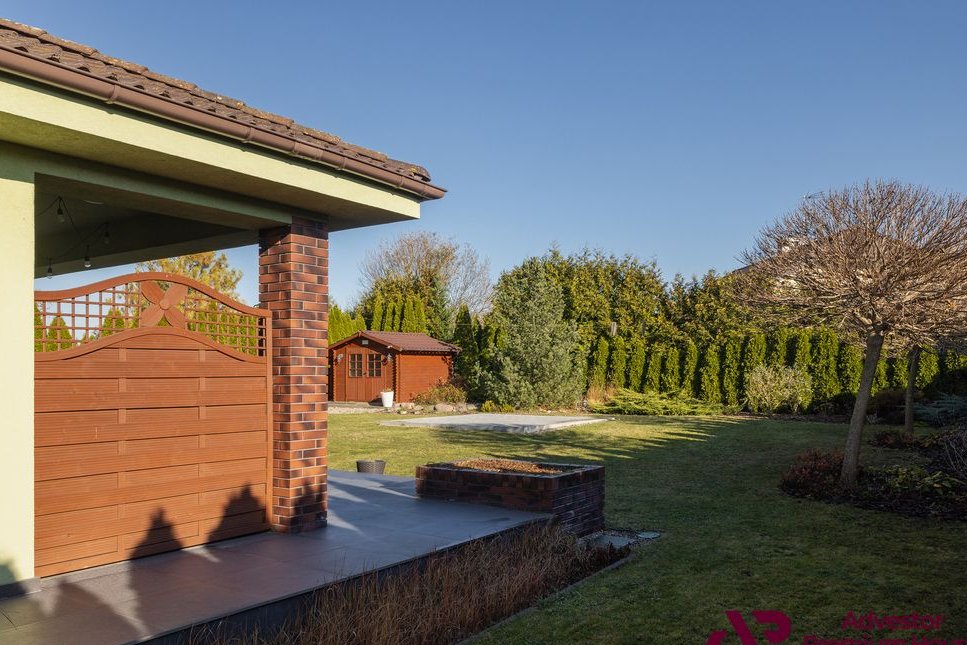 Na szczególną uwagę zasługuje pięknie utrzymany ogród, starannie zaprojektowany i wyposażony w system automatycznego nawadniania. Wokół posesji rosną wysokie, gęste tuje, które tworzą naturalną zieloną ścianę, zapewniając pełną prywatność i kameralny klimat. Zarówno ogród, jak i front posesji są bardzo zadbane, co podkreśla estetykę całej nieruchomości.