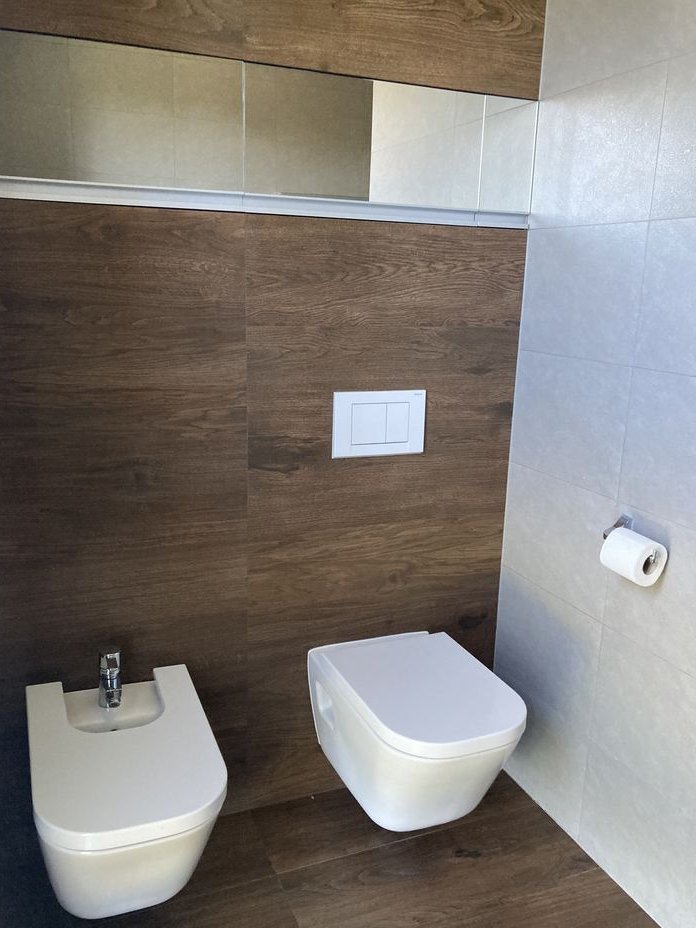 - pomieszczenie przygotowane pod toaletę wymaga ono wykończenia ale znajdują się w niej przyłącza pod wc i umywalkę tak więc można swobodnie wykończyć według własnego gustu na toaletę dla gości . Obecnie pełni ono funkcje pomieszczenia gospodarczego ( do przechowania odkurzaczy , mopa czy innych podręcznych przedmiotów),