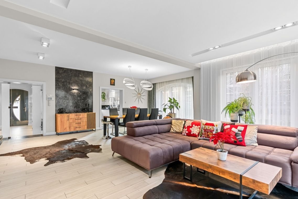 Dom zachwyca przemyślanym układem pomieszczeń, luksusowym wykończeniem i piękną działką ze strumykiem w pierwszej linii.