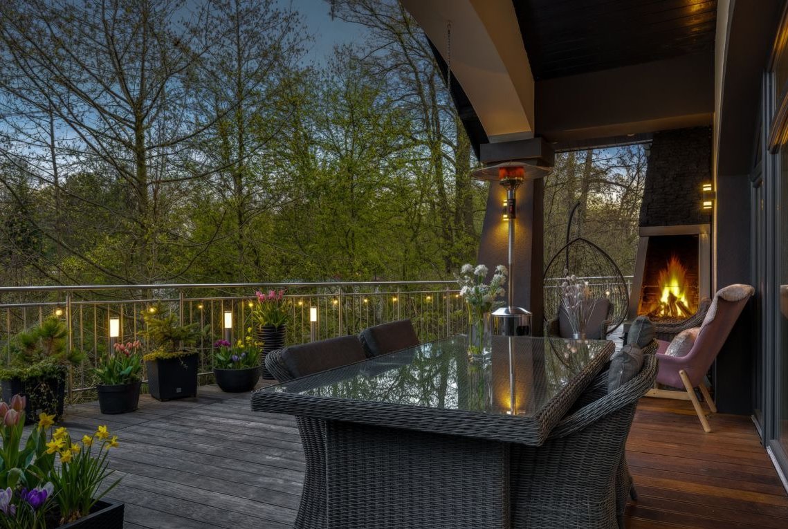 Przestronny taras od strony ogrodu, odizolowany od frontu domu idealne miejsce do wypoczynku z widokiem na zieleń.