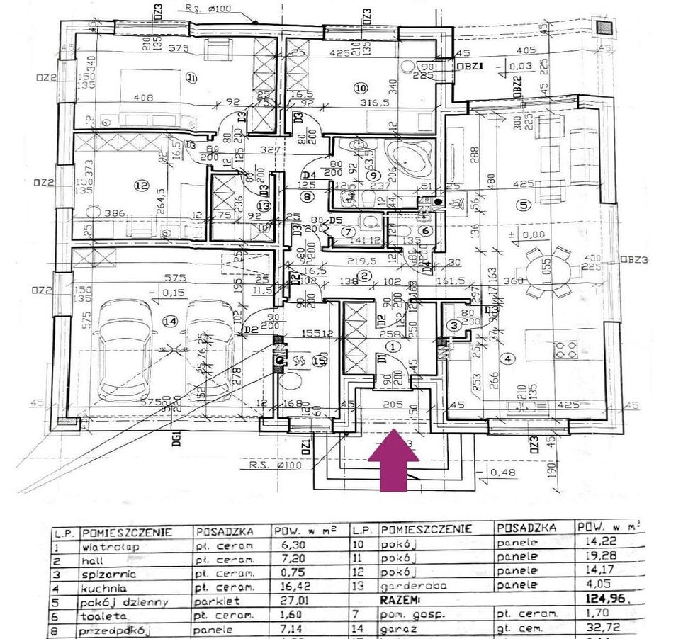 - garaż w bryle budynku (2 miejsca postojowe, z bramą automatyczną),