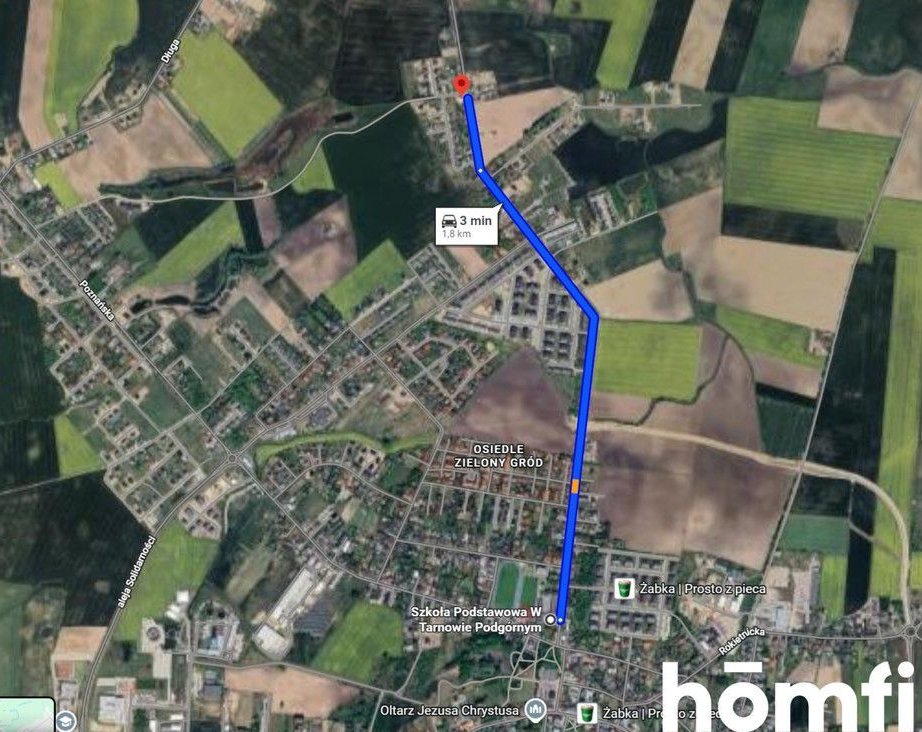• Sklepy spożywcze (np. Lidl Tarnowo Podgórne) – około 2,5–3,0 km samochodem (5–6 minut), pieszo 30–35 minut.