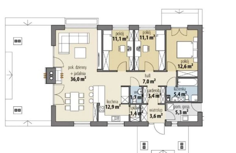 Dom jest bardzo ekonomiczny w utrzymaniu zastosowane rozwiązania zapewniają komfort cieplny oraz niskie koszty eksploatacyjne.