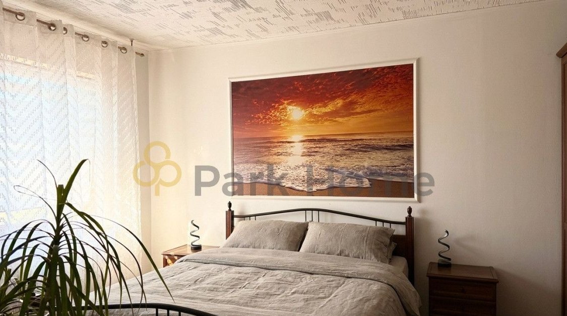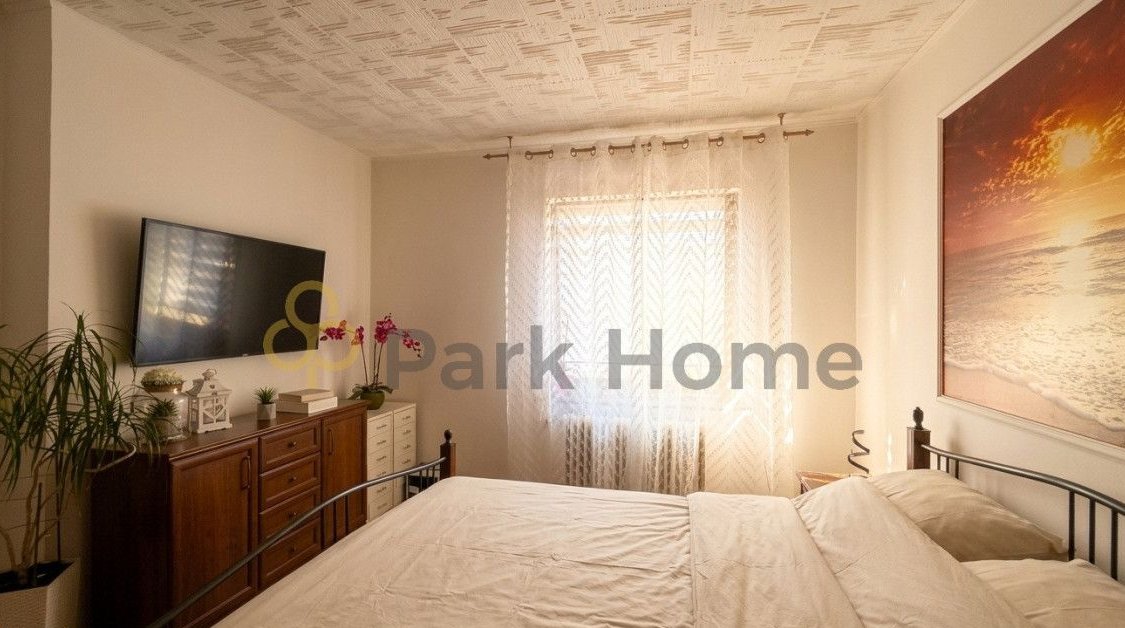 Kuchnia została zaprojektowana w sposób niezwykle funkcjonalny - jasna zabudowa z dużą ilością szafek i sprzętem AGD (w tym zmywarką w zabudowie) harmonizuje z ciemnymi blatami i błyszczącą podłogą, co ułatwia utrzymanie czystości. Sypialnie są ustawne i przytulne.