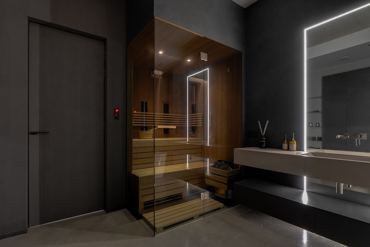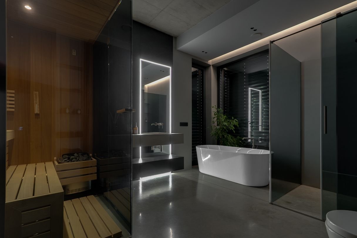 Kilka przestronnych sypialni, łazienki wykończone w gresach Grespania i mikrocemencie