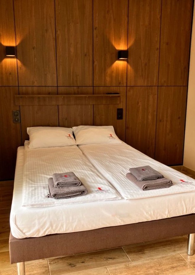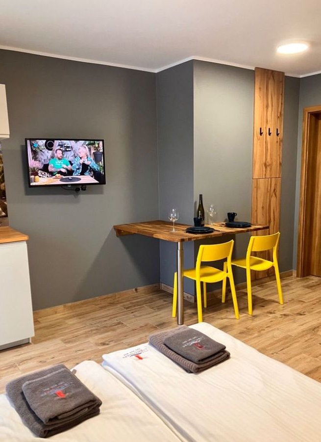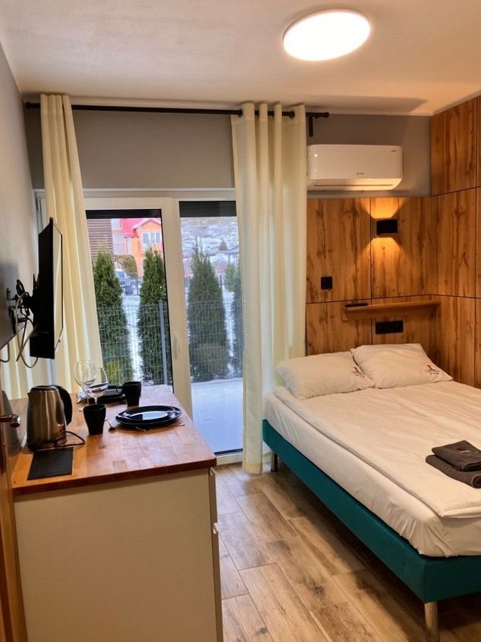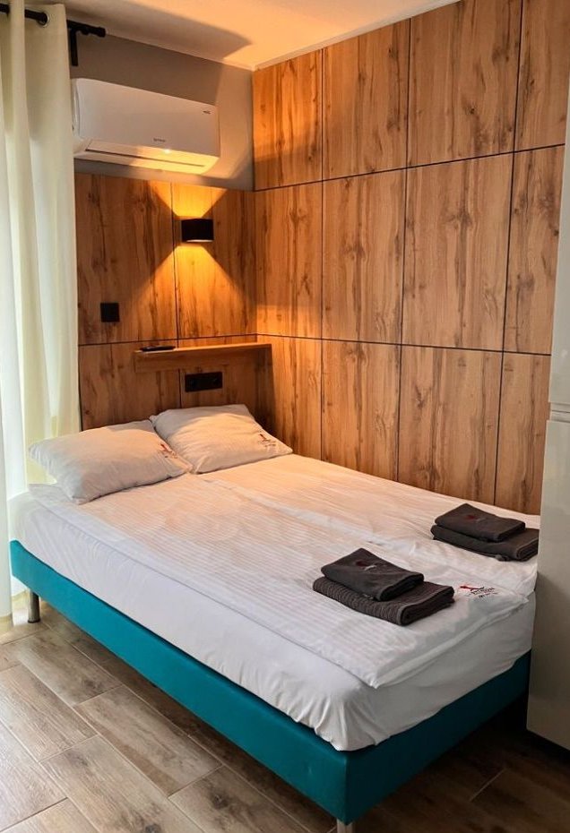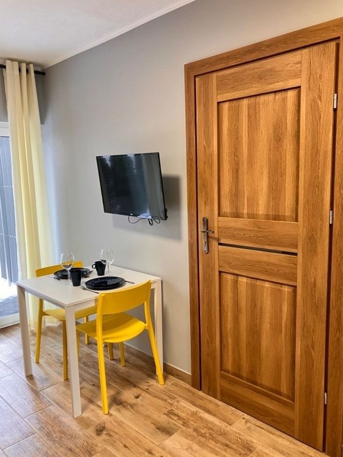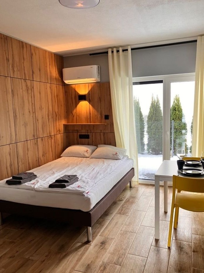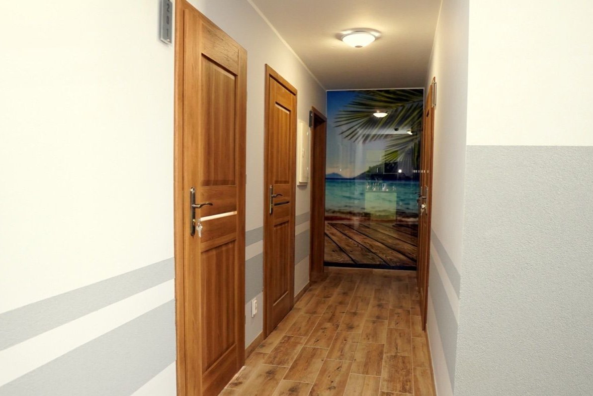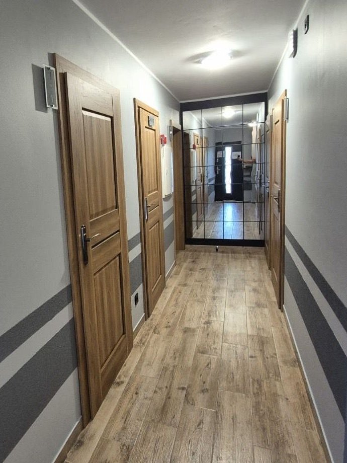 Budynek wybudowany w 2019 roku, o powierzchni ok. 200 m2 plus ok 70 m2 poddasza użytkowego – razem ok. 270 m2. Wysoką stopę zwrotu dla przyszłego właściciela zapewniają gotowe pod wynajem 10 pokoi 2-4 osobowe. Parter to 4 pokoje z łazienkami i tarasami + aneks kuchenny + kotłownia (3 pokoje dwuosobowe i 1 pokój trzyosobowy). 1 piętro to 4 pokoje z łazienkami i balkonami + aneks kuchenny + pomieszczenie gospodarcze (2 pokoje dwuosobowe i 2 pokoje trzyosobowe). Poddasze to 3 pokoje z łazienkami i dostępem do balkonu + aneks kuchenny (2 pokoje dwuosobowe i 1 pokój czteroosobowy). Wszystkie pokoje oraz aneksy kuchenne są w pełni urządzone w niezbędne wyposażenie. Przed budynkiem miejsca postojowe dla 10 samochodów. Budynek ogrzewany jest pompą ciepła firmy Panasonic, w lato możliwość chłodzenia podłóg za pomocą pompy ciepła, pokoje na parterze i 1 piętrze wyposażone w elektroniczne sterowniki temperatury. Zasobnik wody 400 l, zasilający w ciepłą wodę parter i 1 piętro. Ciepła woda poddasze – w każdej łazience bojler elektryczny Ariston. Wszystkie pokoje posiadają klimatyzację z możliwością ogrzewania (parter i 1 piętro firmy Rotenso, poddasze firmy Gree). Dodatkowo obiekt ma zamontowaną instalację fotowoltaiczną 6,3kW. Obiekt budowany od podstaw w najnowszych technologiach (np. okna 3 szybowe, termoizolacja elewacji gr. 20cm, instalacja alarmowa, kamery itp.). Do dyspozycji gości jest łącze internetowe (wi – fi). Teren wokół pensjonatu zagospodarowany: trawnik z systemem nawodnień, nasadzenie - tuje.