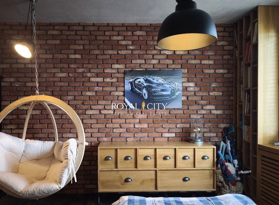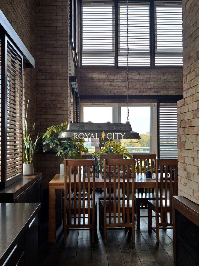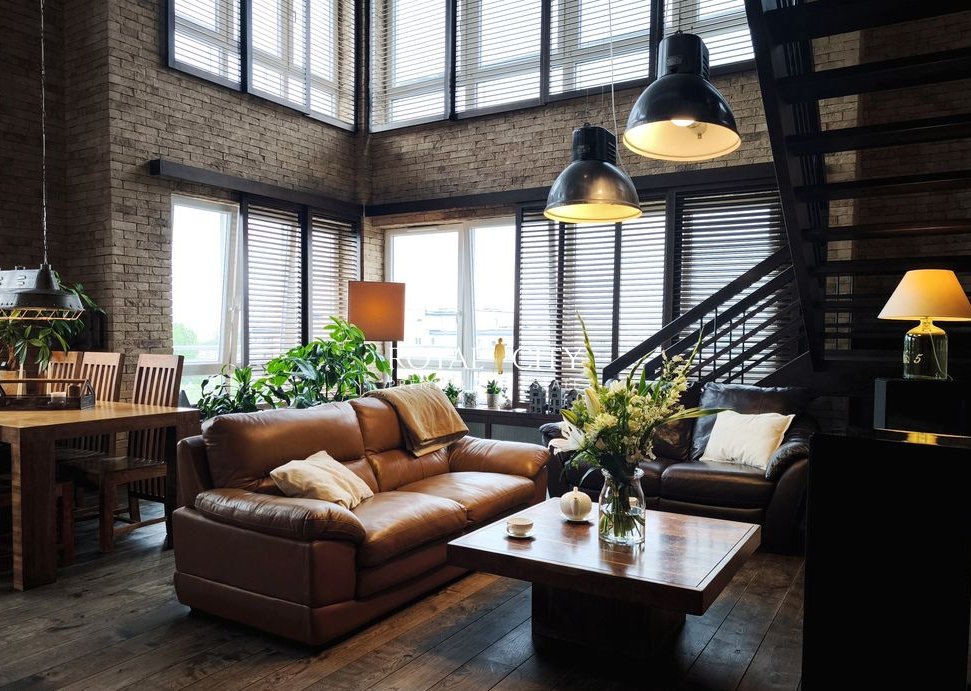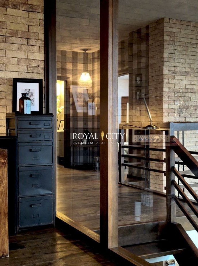 Na pierwszym poziomie mieści się imponujący salon o wysokości około sześciu metrów, ze ścianą przeszkleń otwierającą wnętrze na miejski pejzaż, z pięknym kominkiem nadającym przestrzeni przytulności. Obok znajduje się przestronna, w pełni wyposażona kuchnia, łazienka z prysznicem typu walk-in, garderoba oraz dodatkowy pokój, który może pełnić funkcję gabinetu, pokoju gościnnego, sypialni lub siłowni.